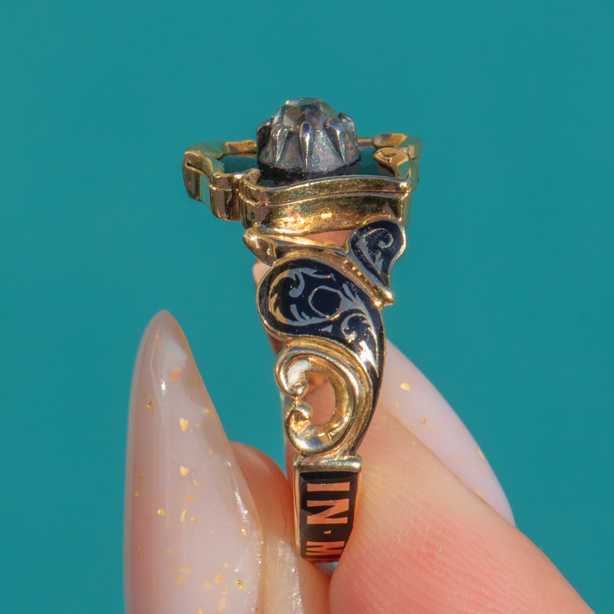 Victorian 18ct Gold Diamond Enamel Mourning Ring c.1850 Item added
