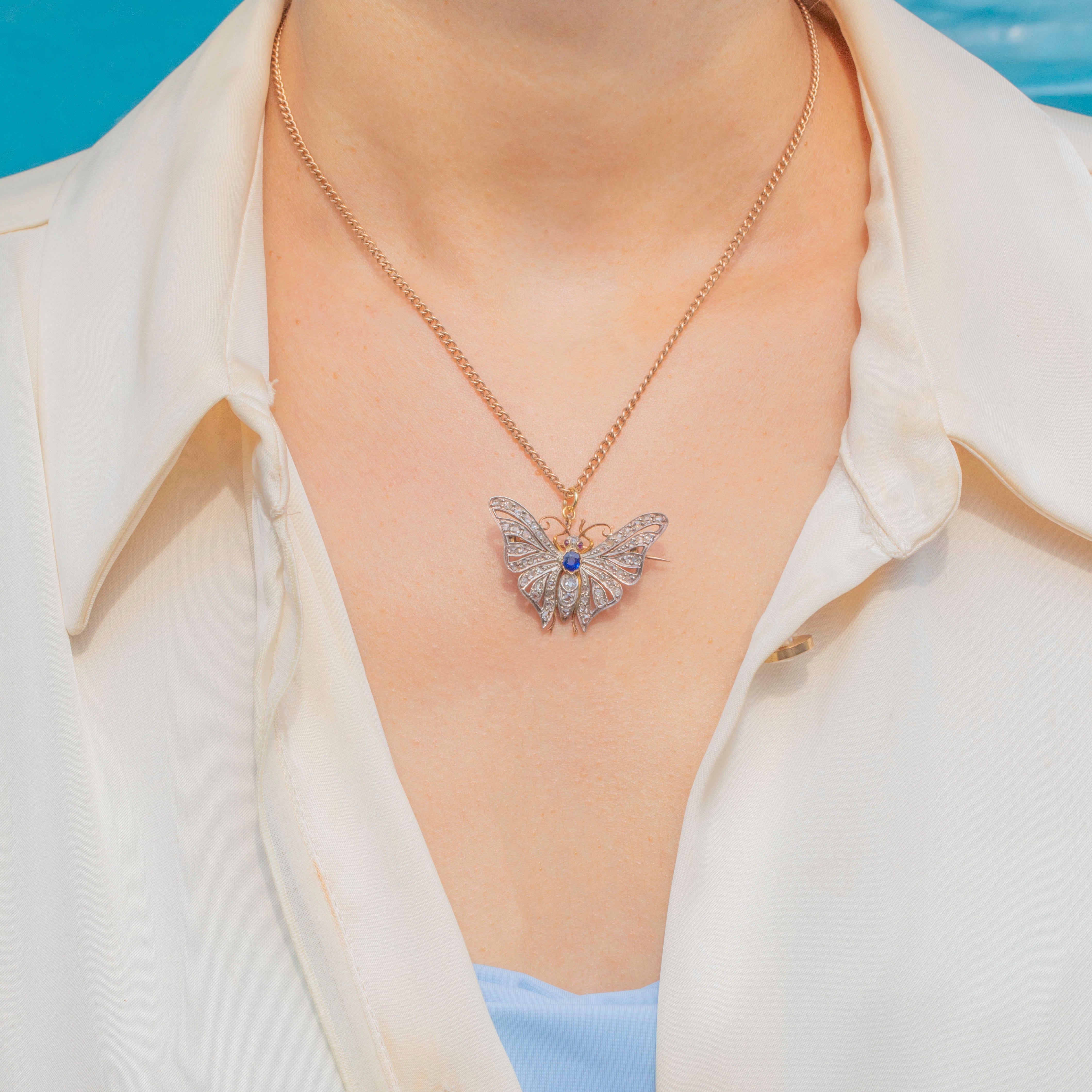 This Victorian 18ct Gold Diamond Sapphire butterfly pendant is an antique delight!