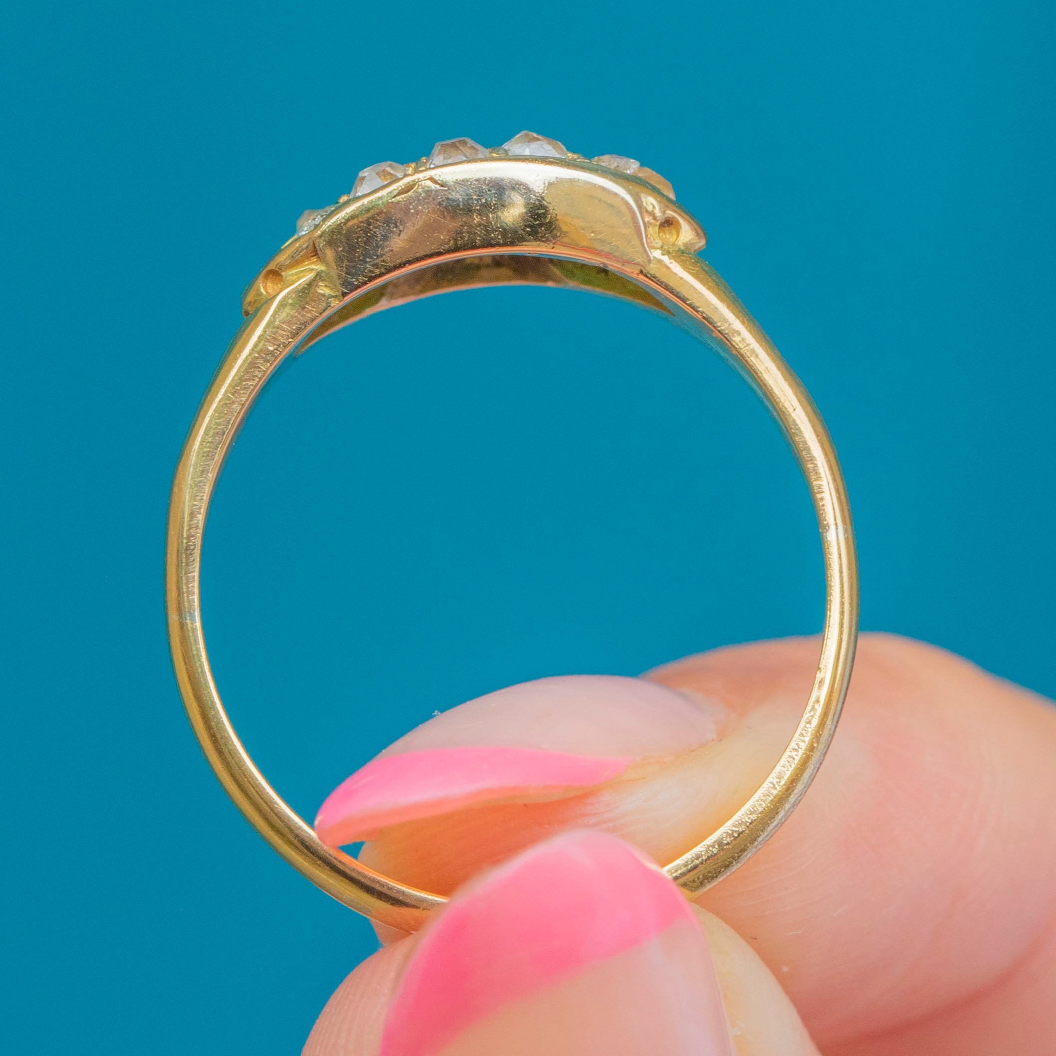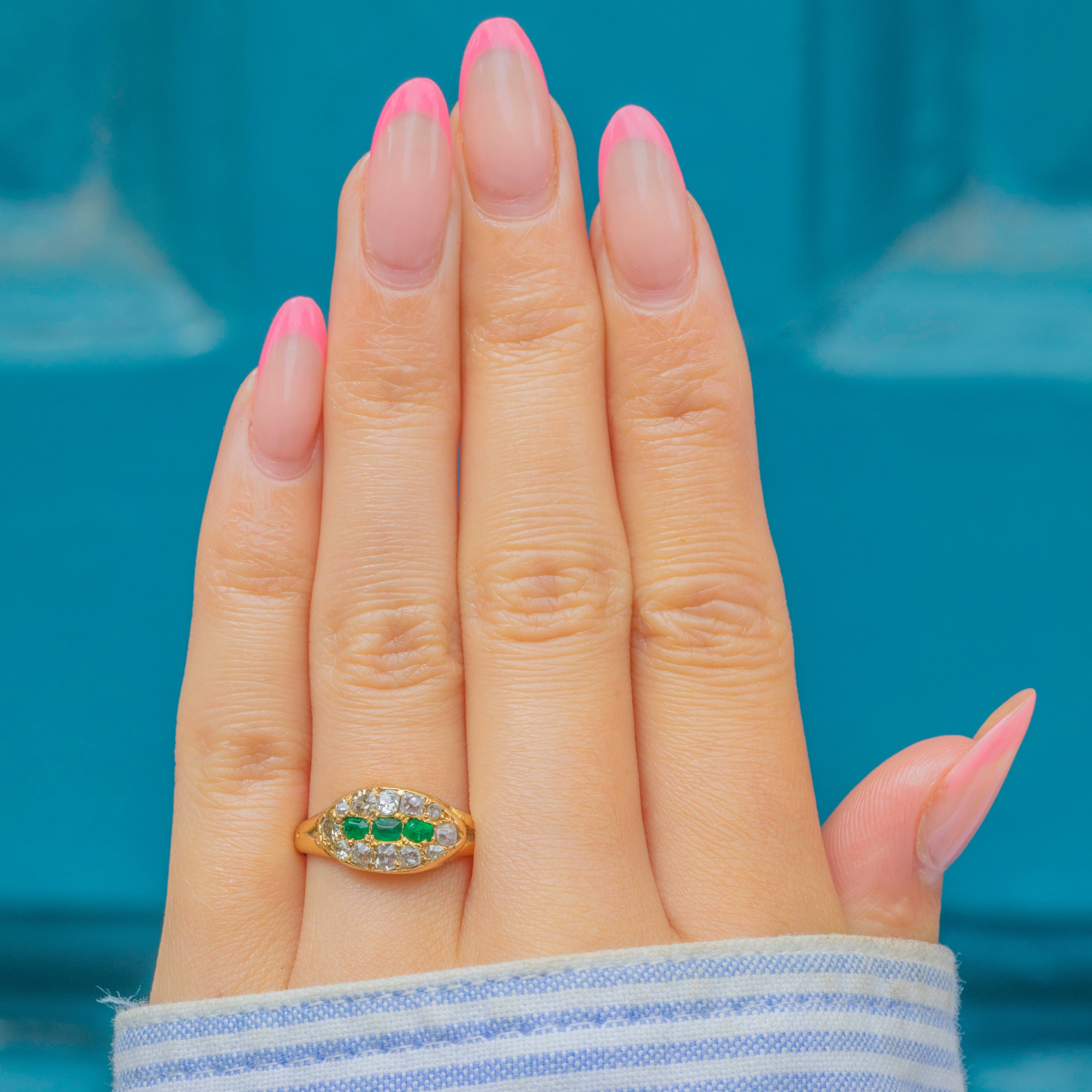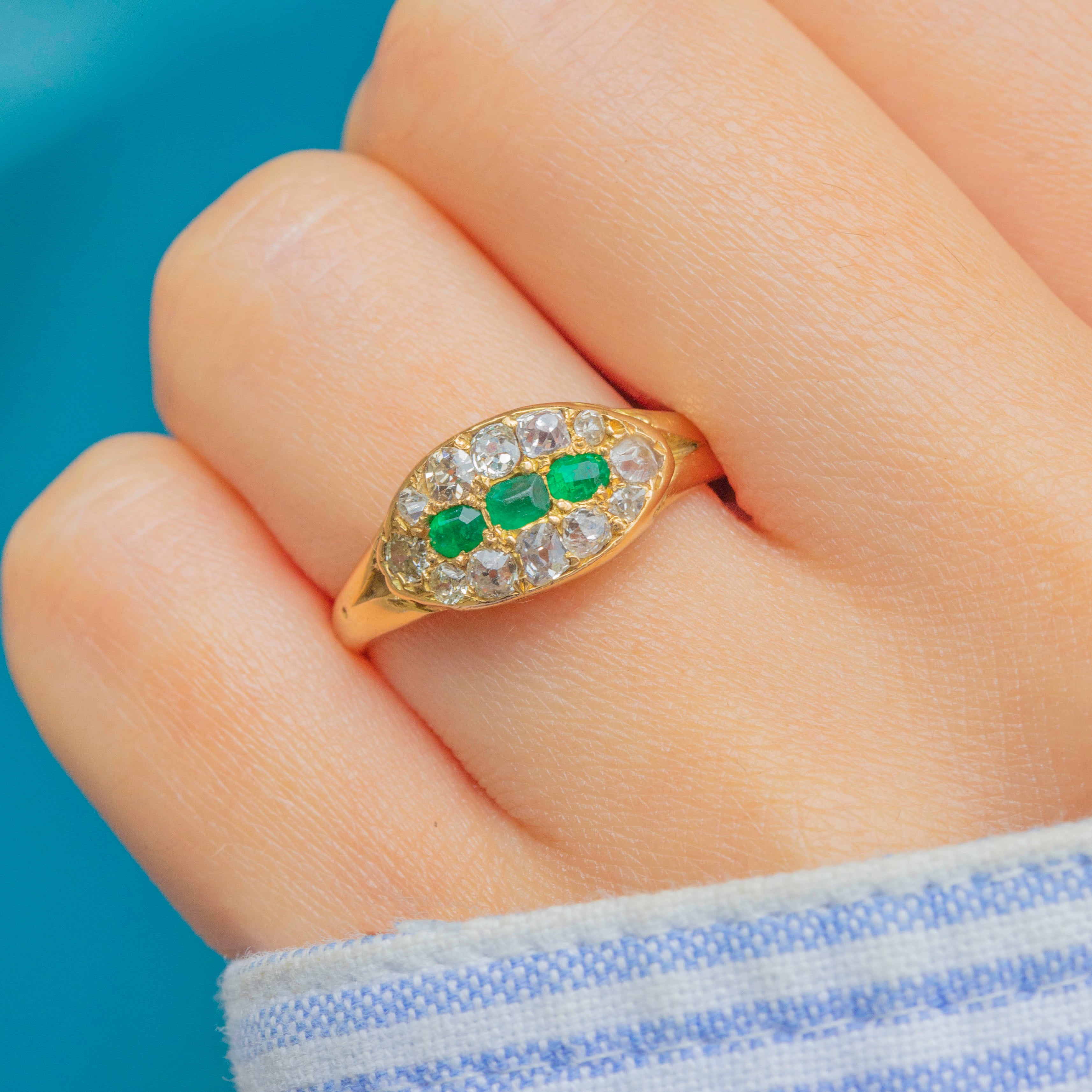 Victorian 18ct Gold Emerald Diamond East to West Cluster Ring