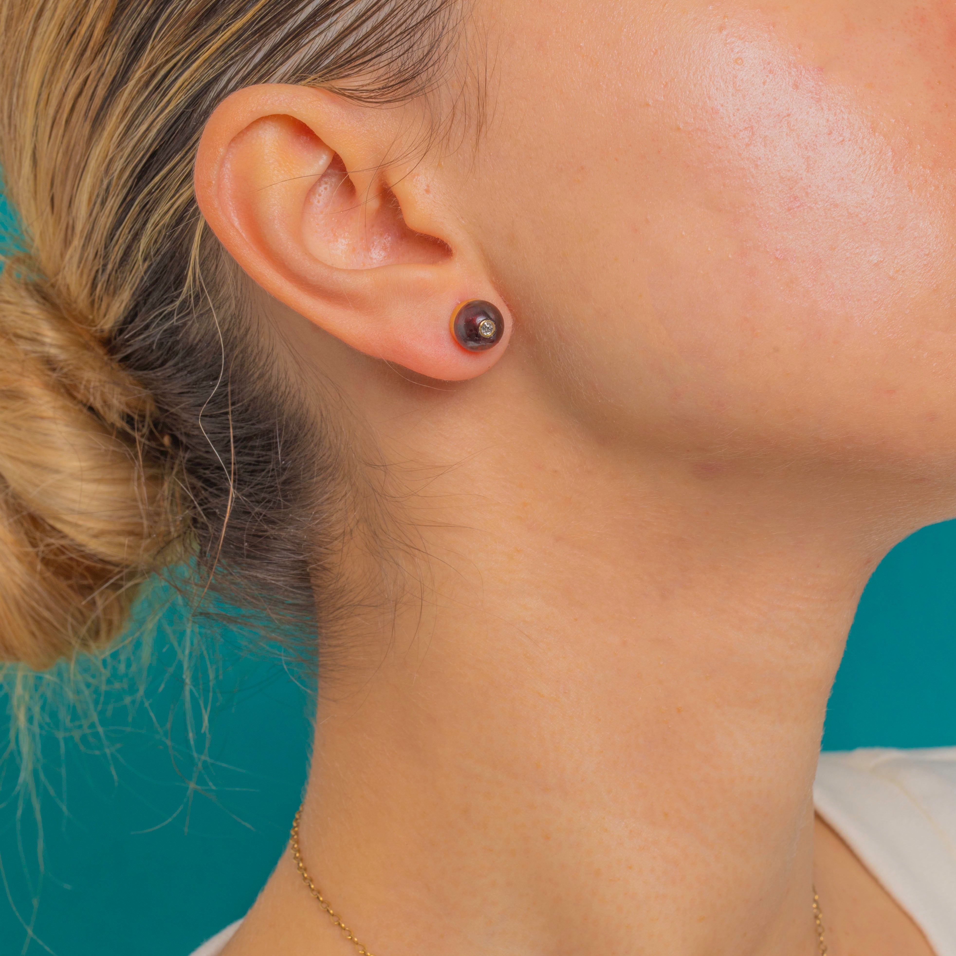 These gorgeous Victorian 18ct Gold Garnet Diamond stud earrings are a perfect example of quality craftsmanship and understated luxury. Each perfectly domed Garnet cabochon is full of juicy, berry-like red tones, and features a twinkling Diamond in the centre.