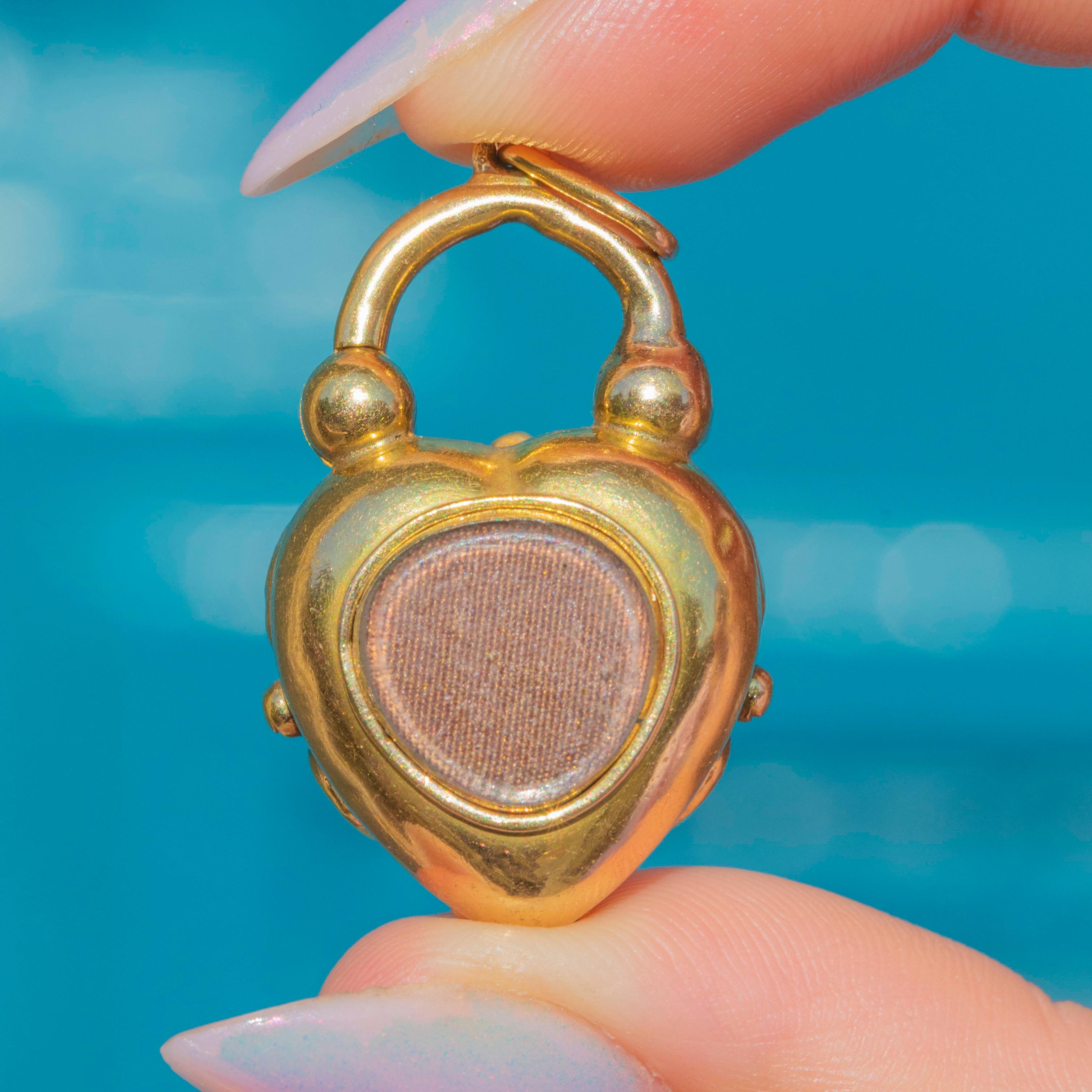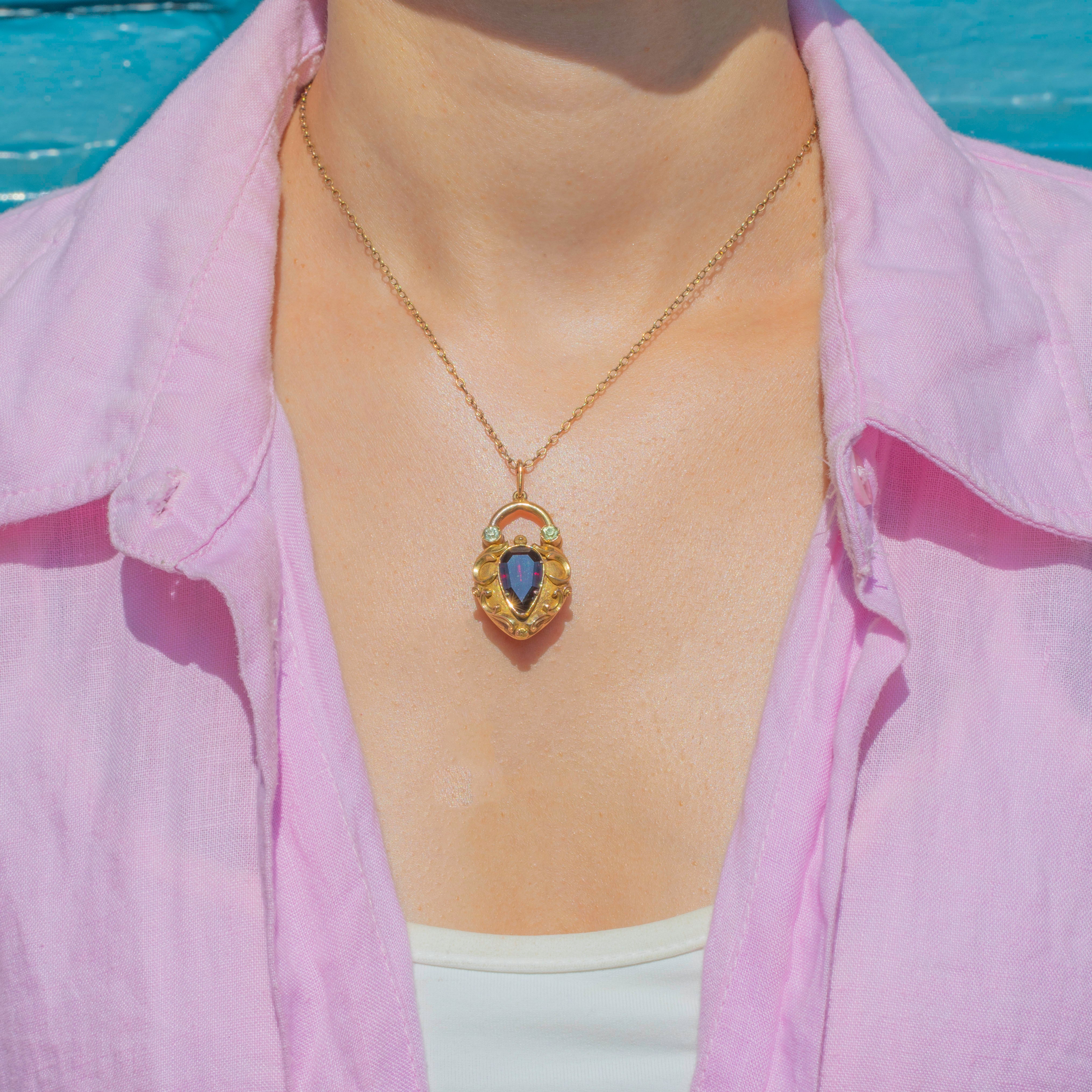 Victorian 18ct Gold Garnet Chrysoberyl Heart Padlock Pendant, Locket Back