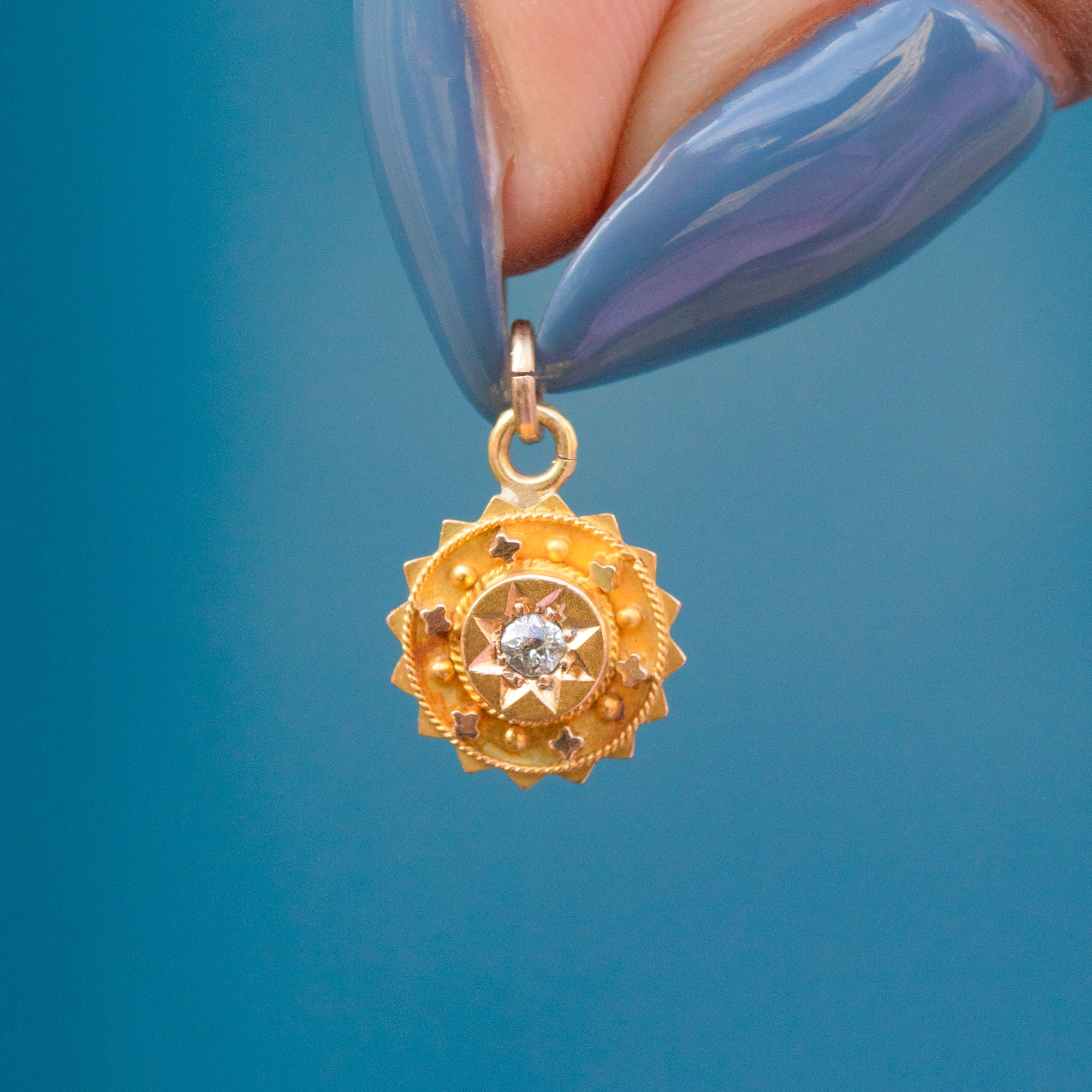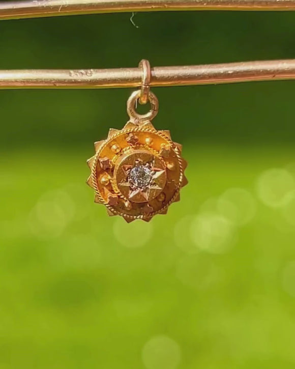 Step into the opulent past with this exquisite Victorian 18ct Gold old-mine cut Diamond charm! Radiating timeless elegance, this pendant will bring celestial allure to your repertoire with her star-set Diamond and beautifully crafted 18ct Gold.