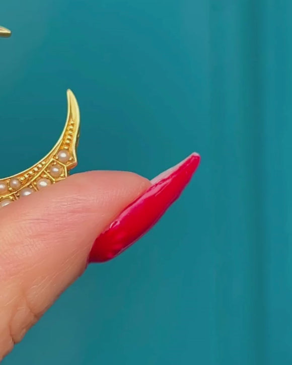 Victorian 18ct Gold Pearl Crescent Moon Pendant