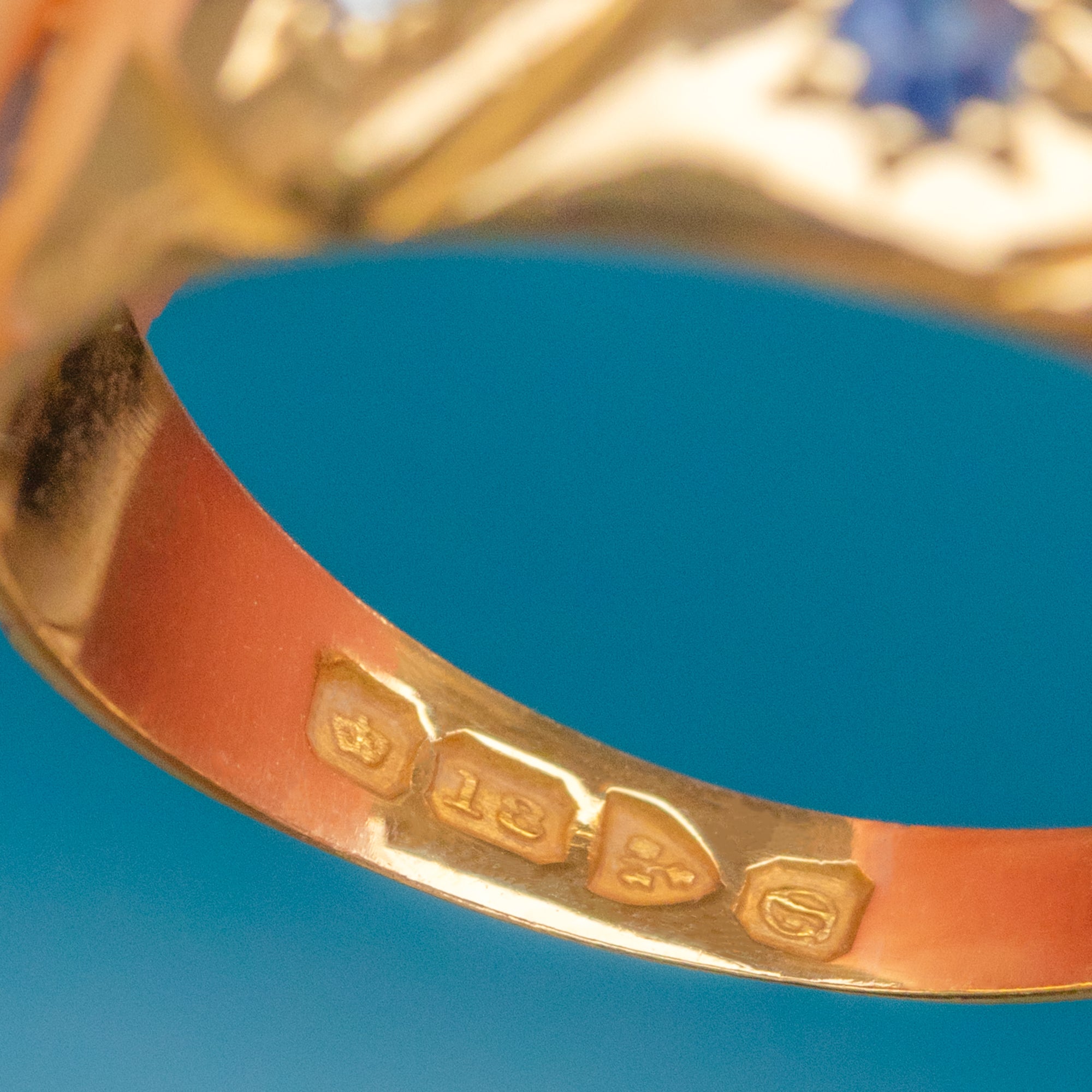 EXCELLENT: Gemstones are bright and well-matched, securely set within crisp star settings. The Gold has a smooth, polished finish with gentle age-related wear. A superbly preserved Victorian ring retaining all its charm and detail.