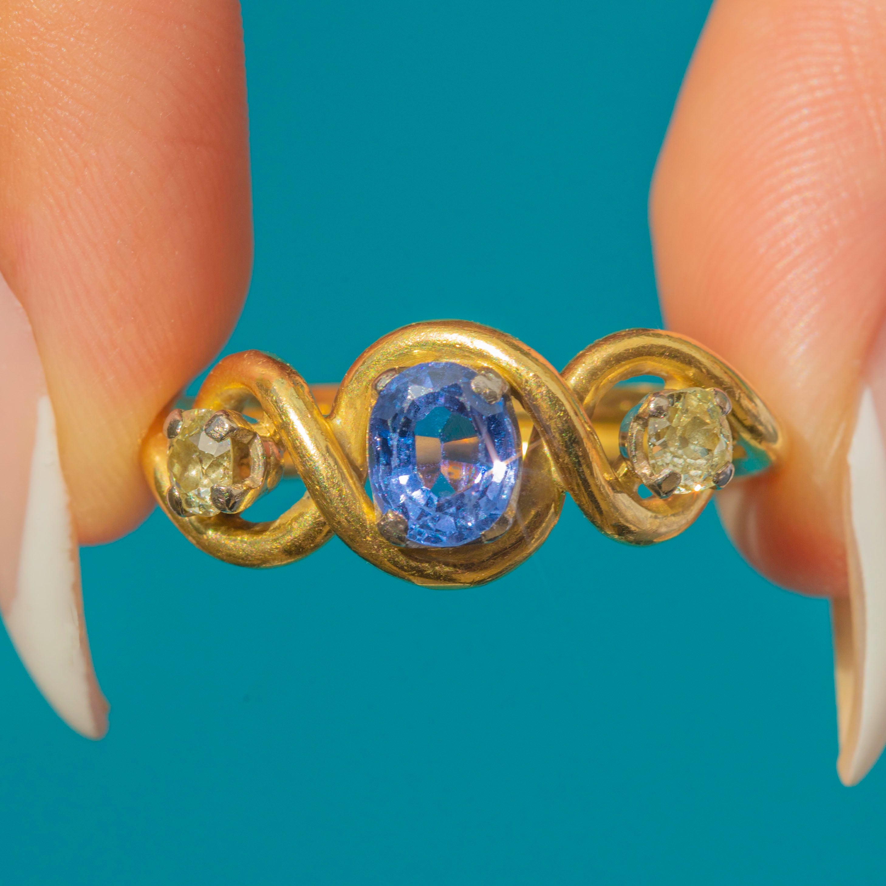 Victorian 18ct Gold Sapphire & Old Mine Cut Diamond Twist Ring, c.1900