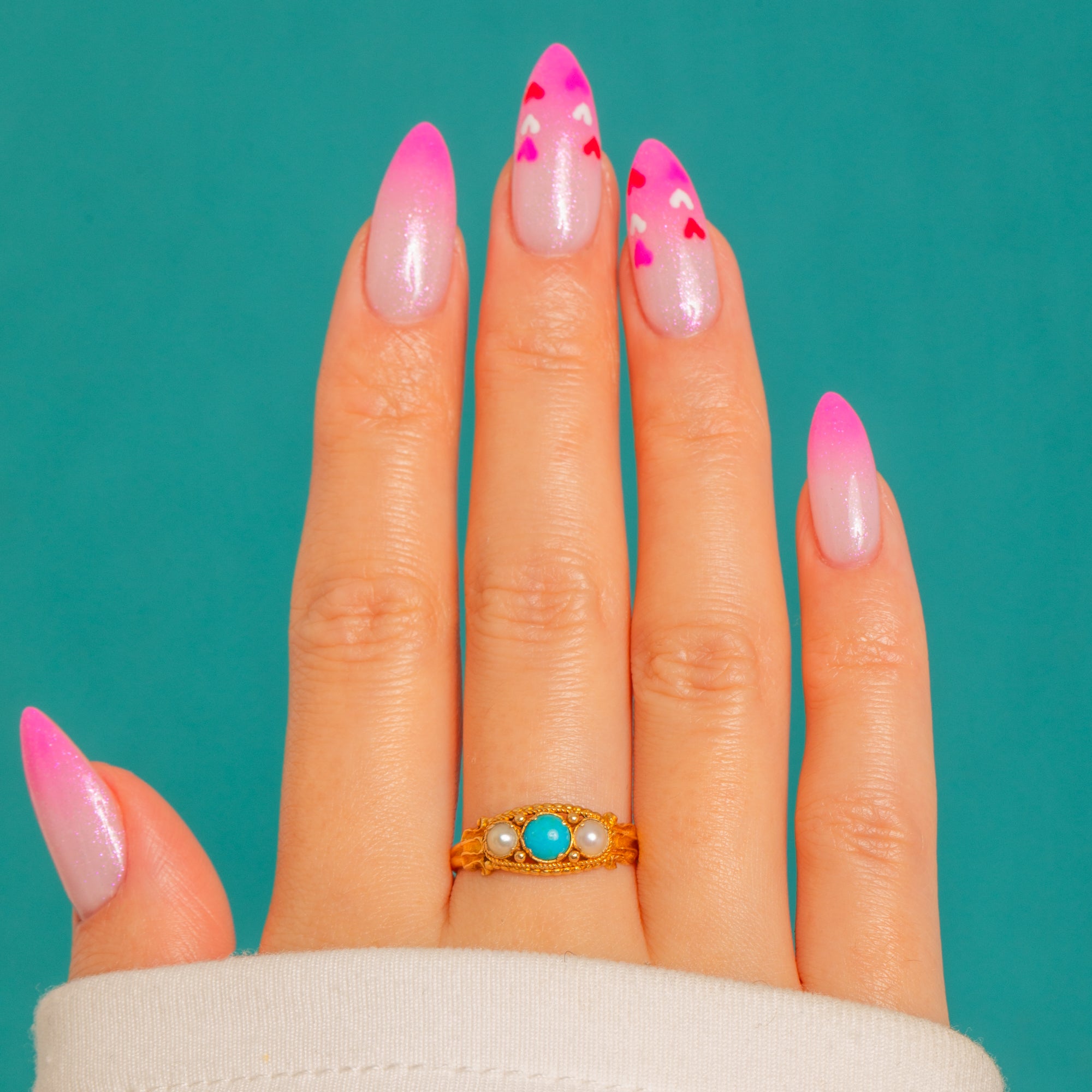 MATERIALS: Tests as 18ct Gold, Turquoise, Pearls.