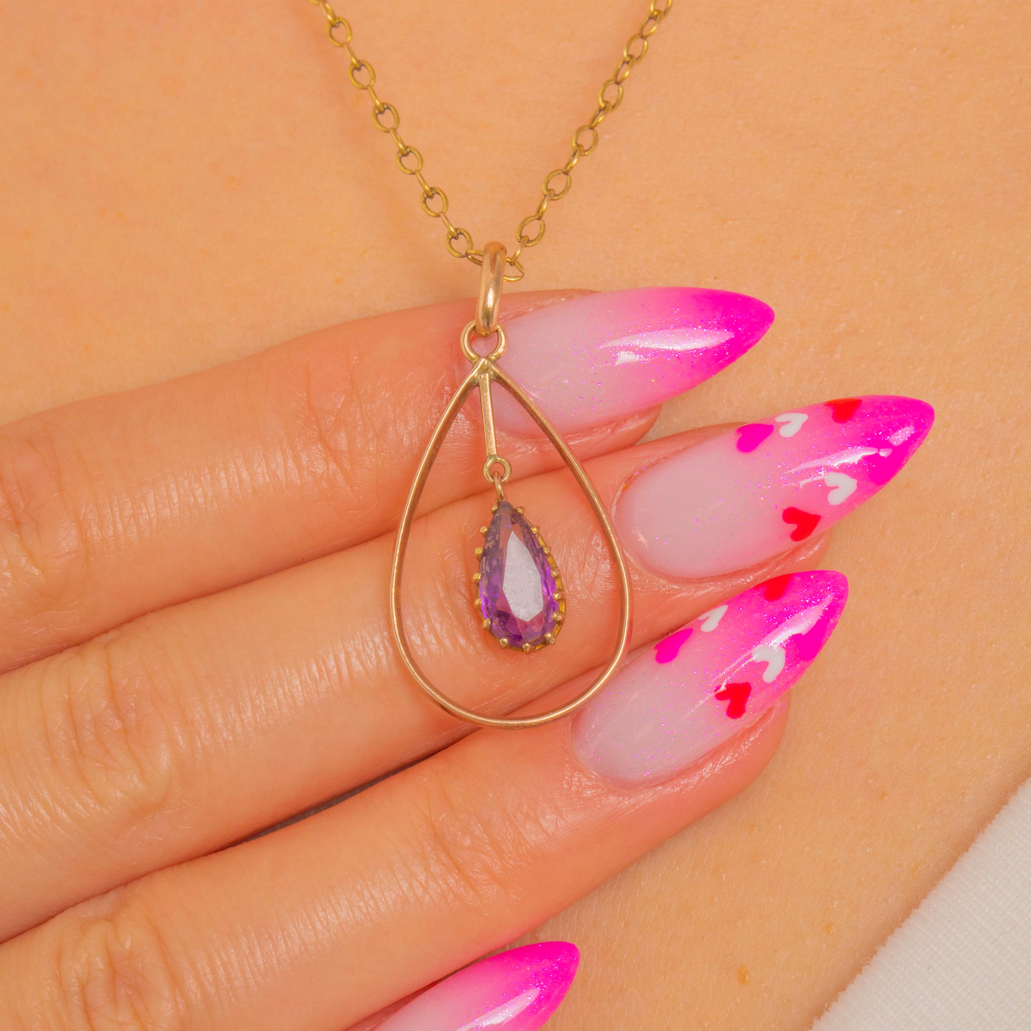 Victorian 9ct Gold Amethyst Teardrop Drop Pendant c.1900 Item added