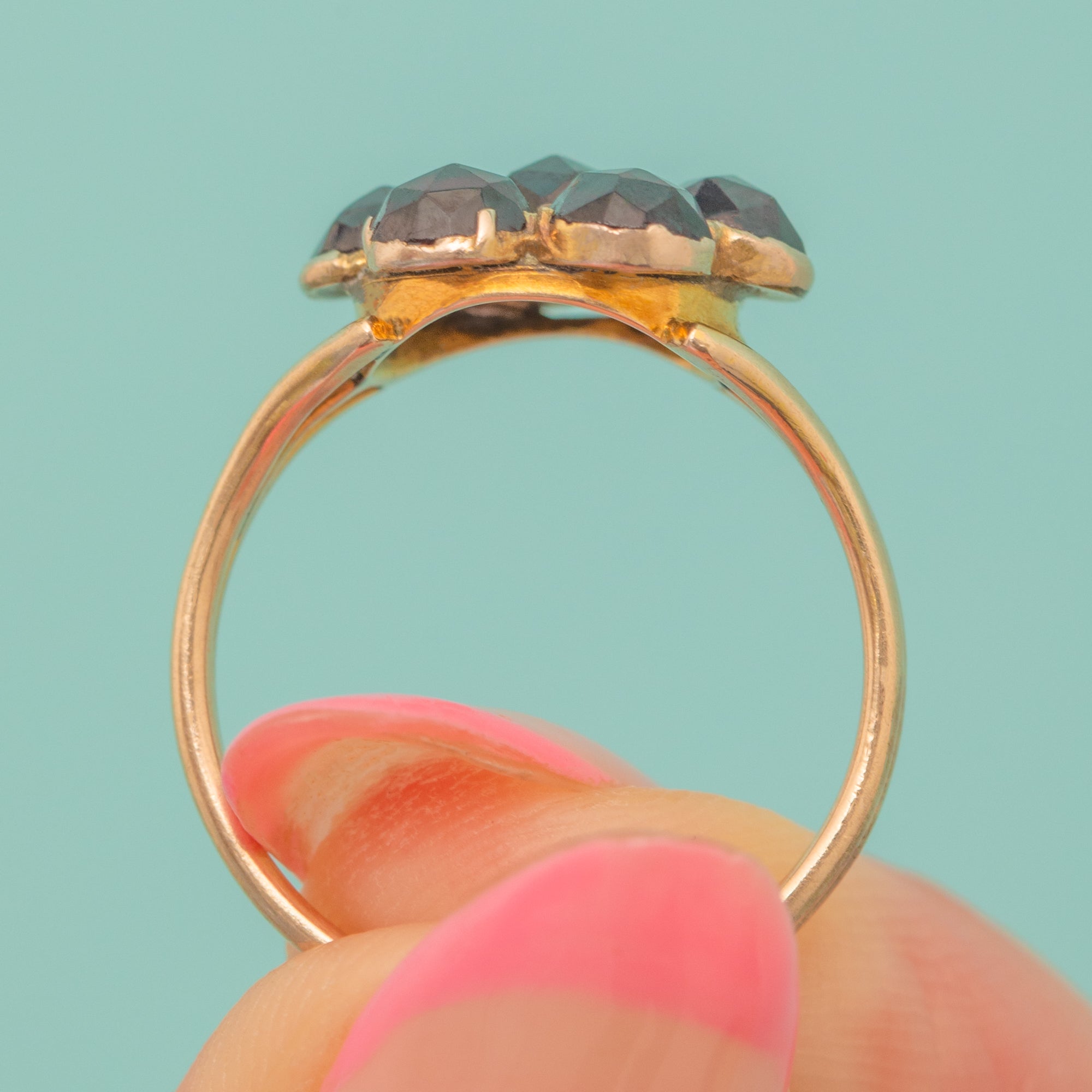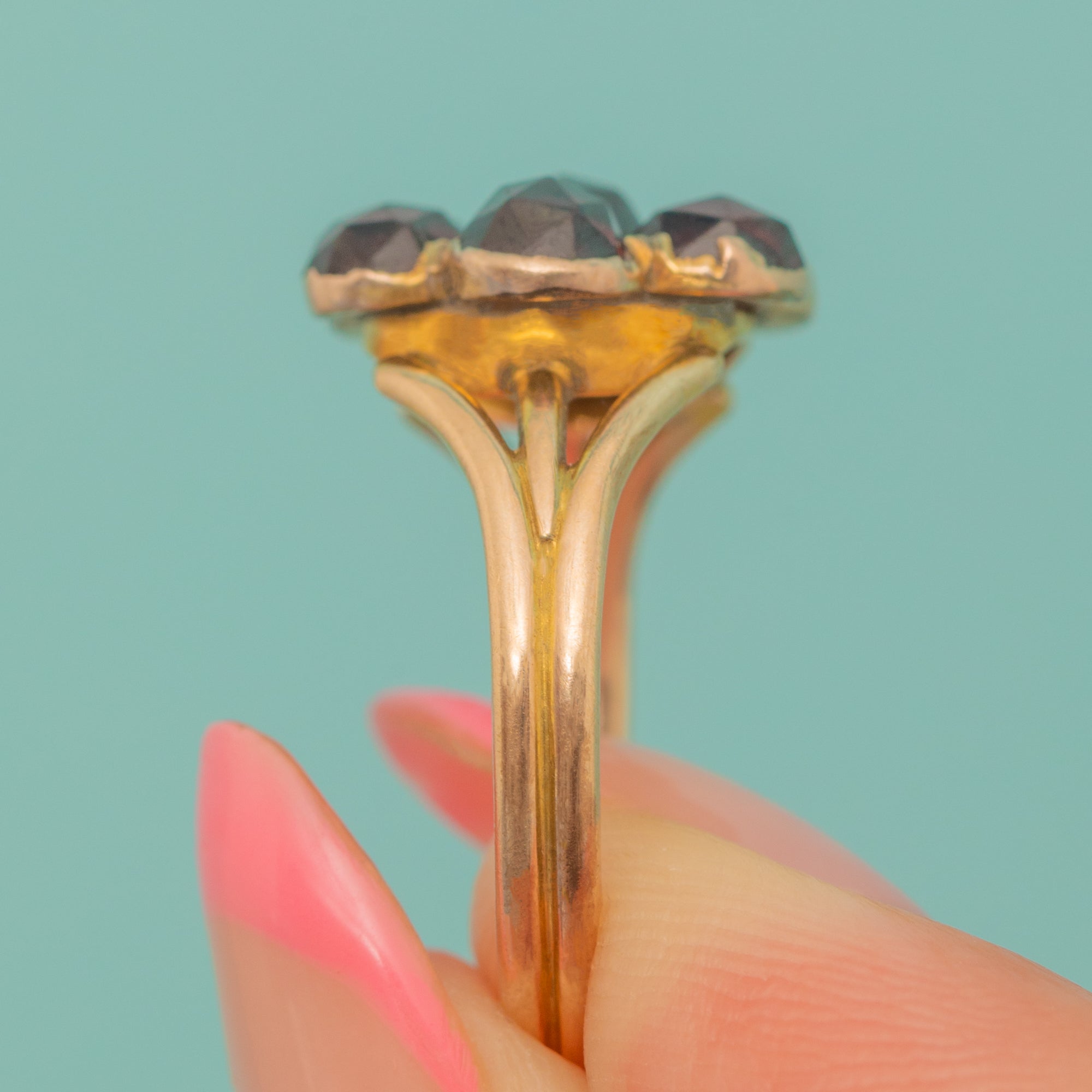 Victorian 9ct Gold Bohemian Garnet Flower Cluster Ring