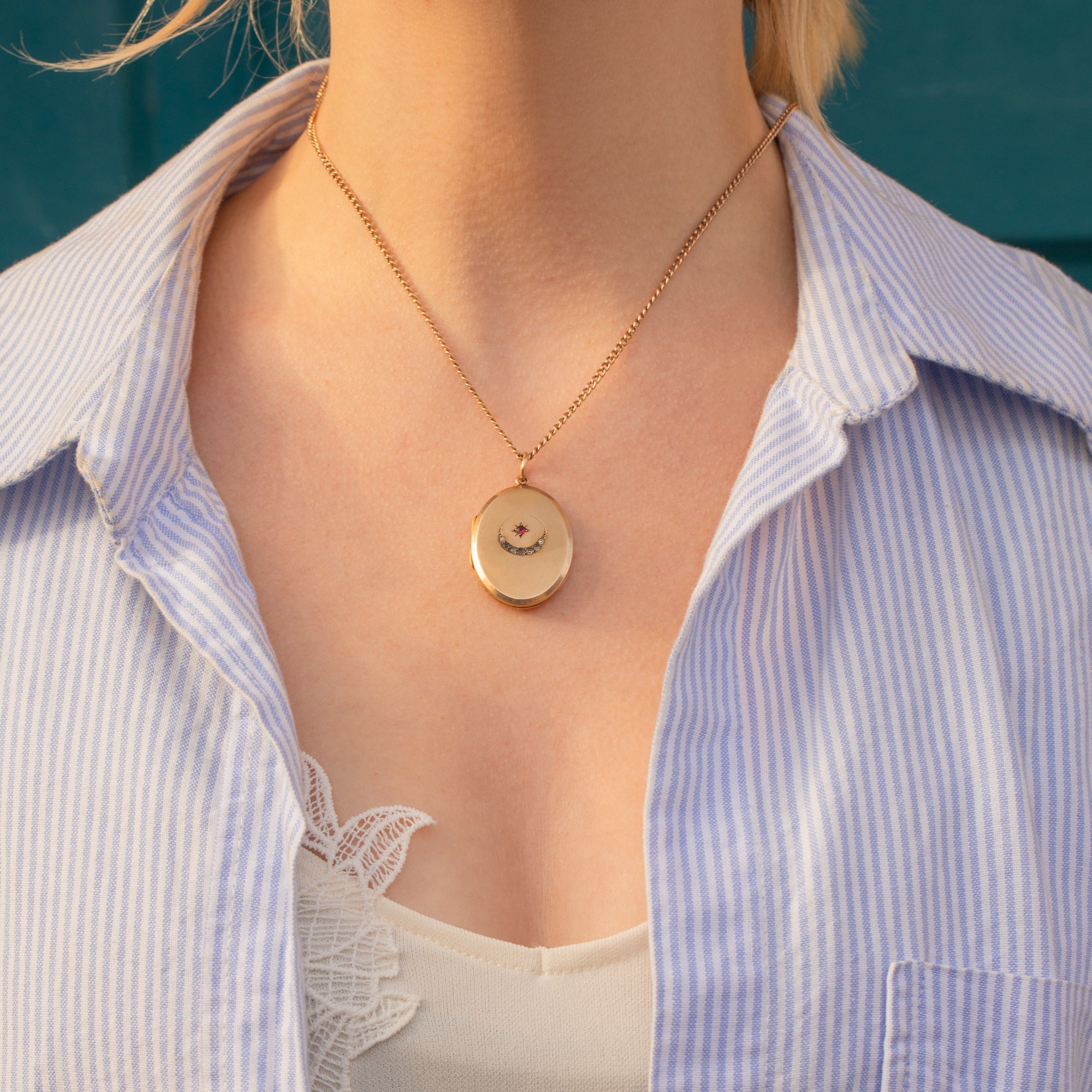 Victorian 9ct Gold Paste Crescent Moon & Star Locket