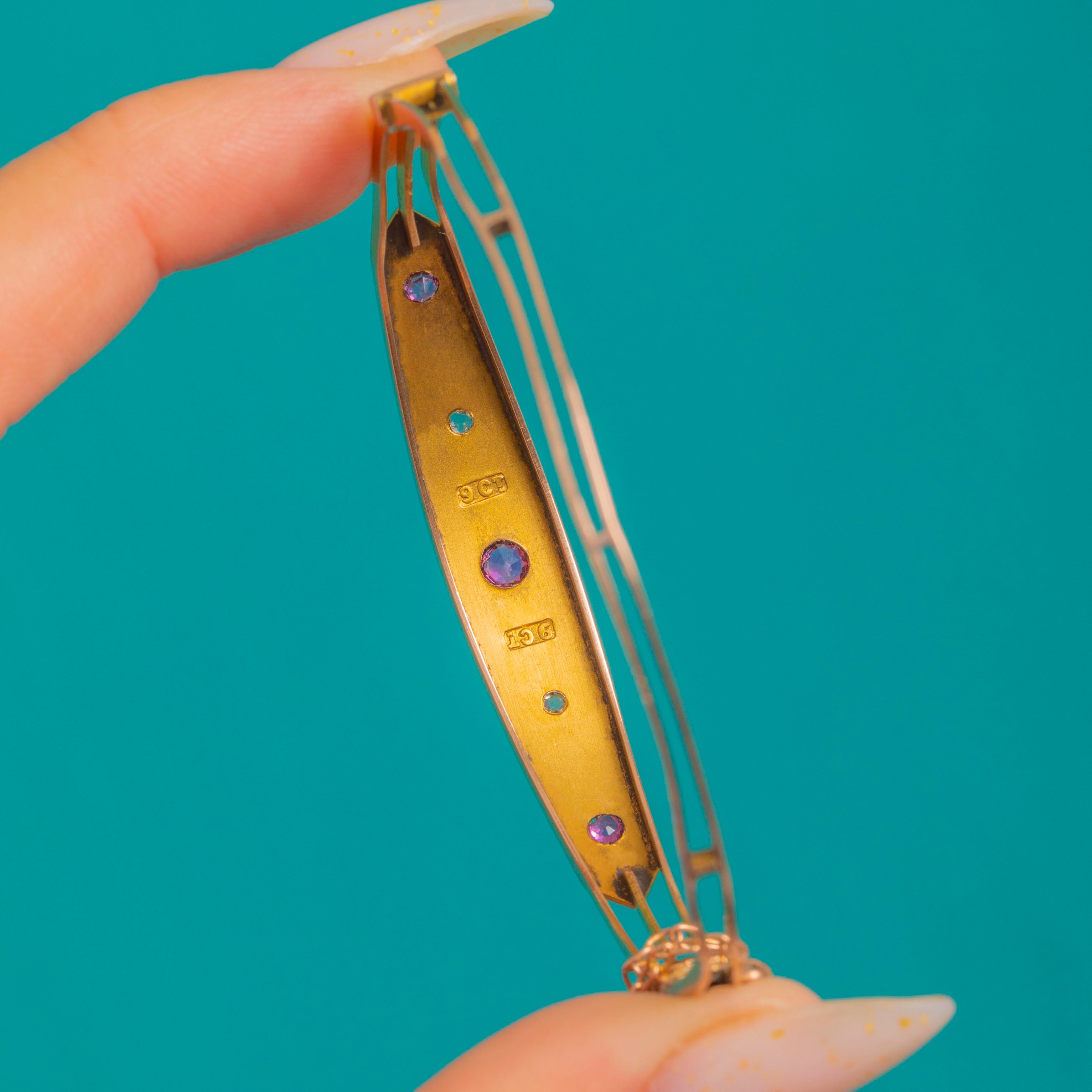 Victorian 9ct Gold Star-Set Ruby Diamond Bangle