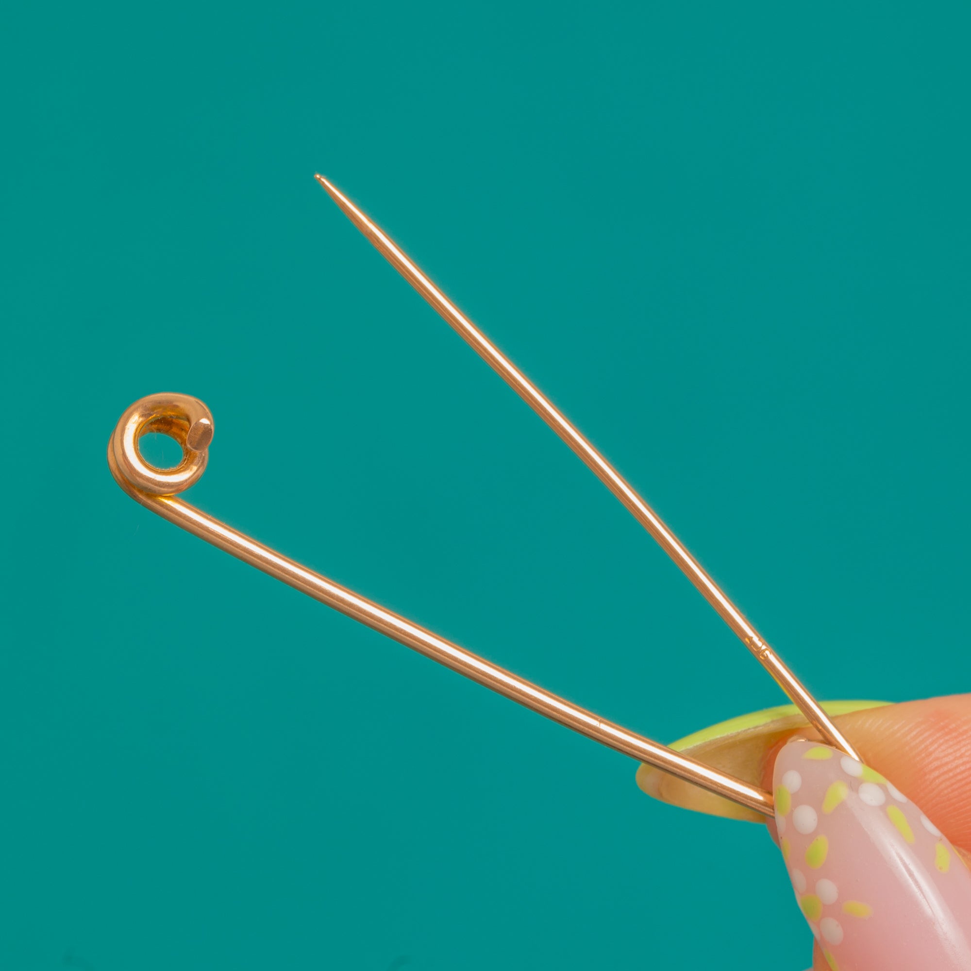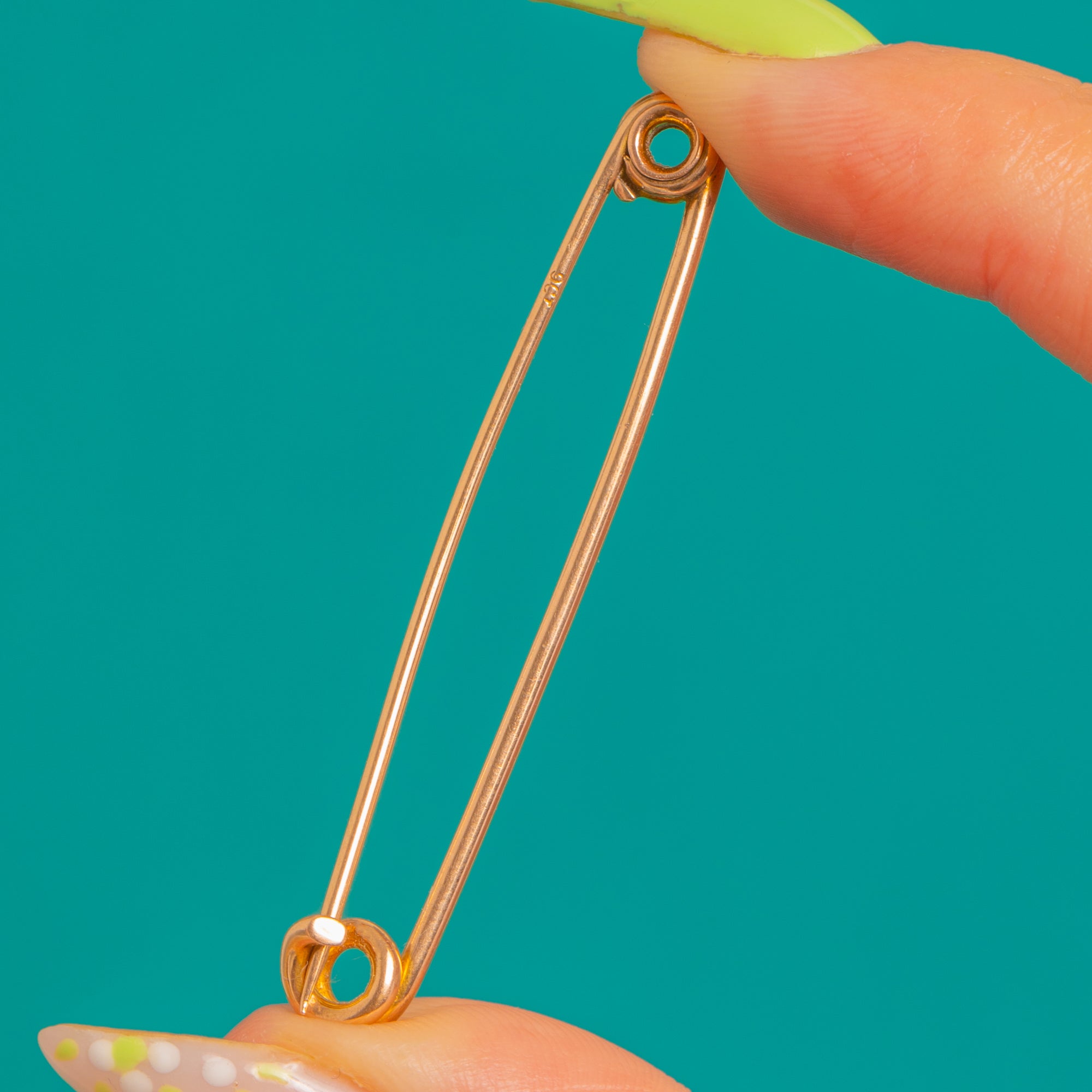 A refined Victorian stock pin rendered in glowing 9ct Gold. Sleek and linear, it features the classic safety-pin profile with a neatly coiled hinge and a secure looped catch, its high-polish finish lending a quiet, luxurious sheen.