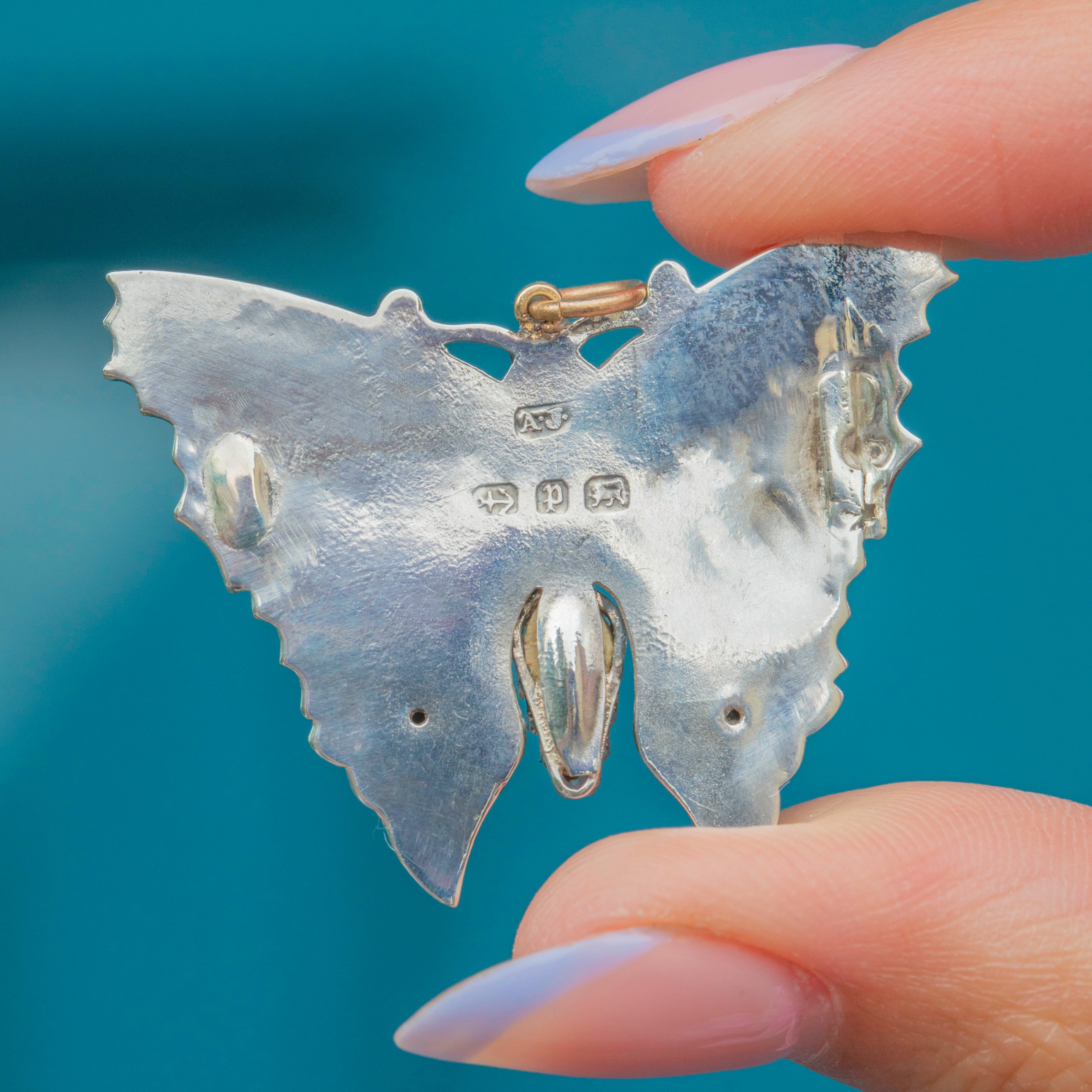 Victorian Aesthetic Silver & 9ct Gold Butterfly Pendant, c.1889