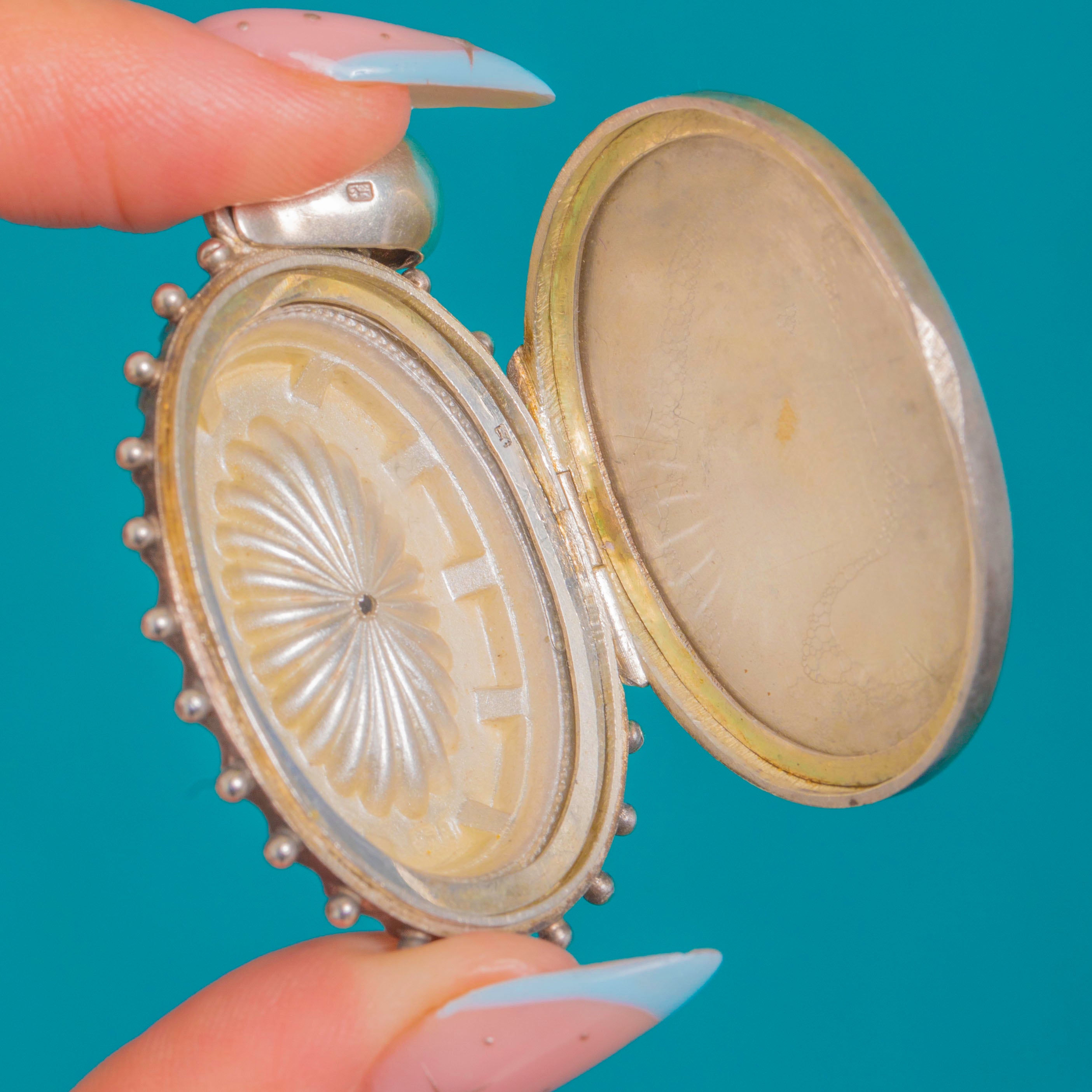 Victorian Aesthetic Silver Beaded Edge Locket, c.1880