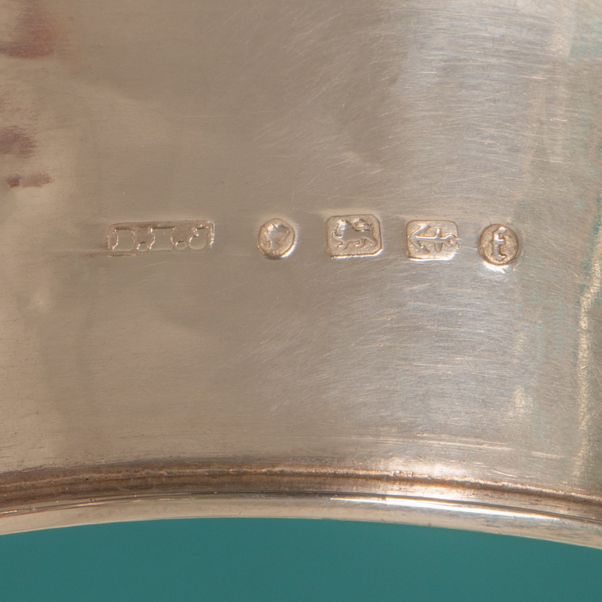HALLMARKS: BHJ, Queen Victoria Assay Mark, Birmingham Anchor, Date letter f for 1880.