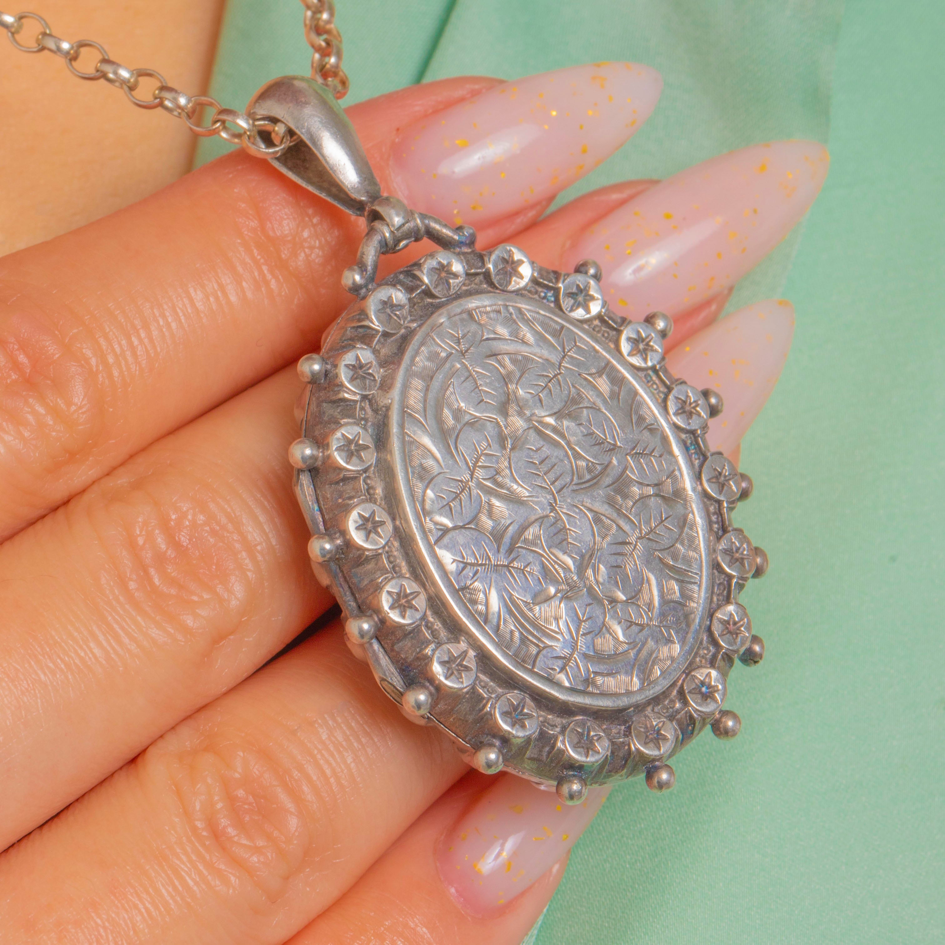 Victorian Aesthetic Silver Locket Stars & Beaded Edge, c.1884 Item added