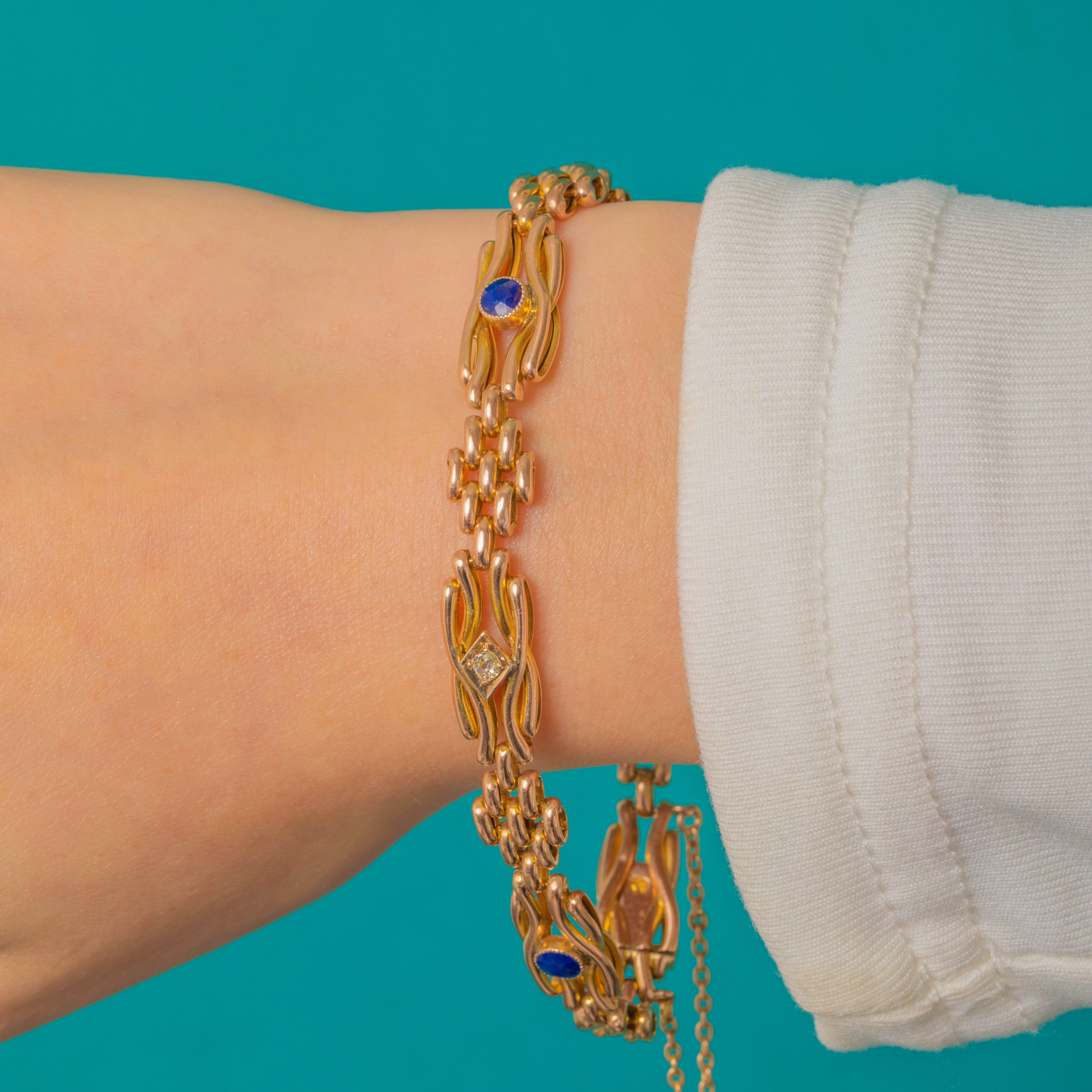 Antique Victorian 9ct Gold Diamond & Natural Sapphire Bracelet