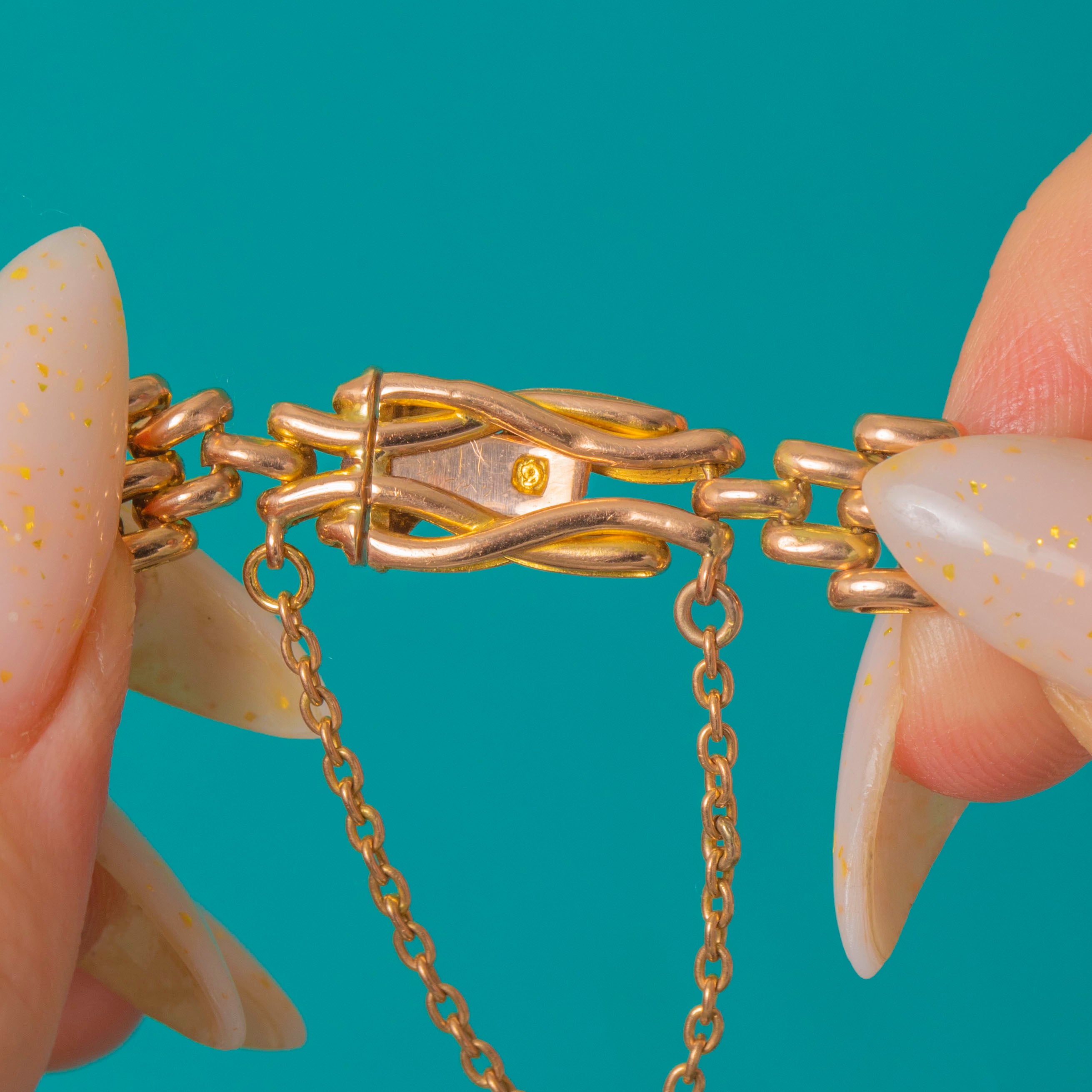 Beautifully made and wonderfully wearable, it closes with a neat box clasp and an added safety chain for peace of mind. A classic piece with delicate detailing, it brings that subtly ornate Victorian charm to any bracelet stack or worn solo.