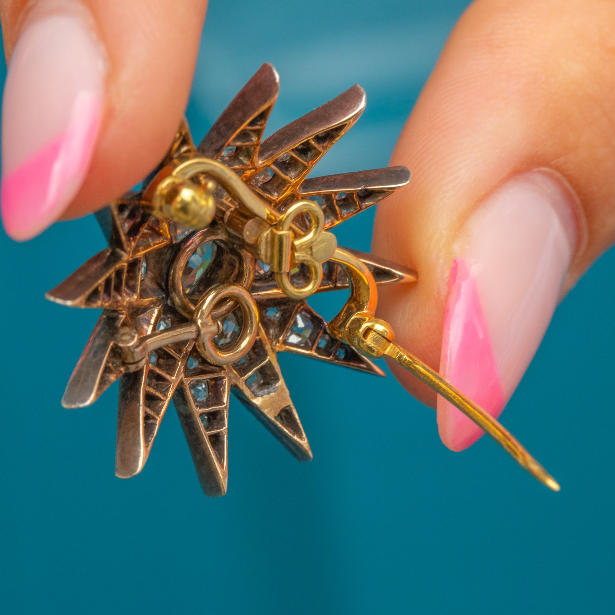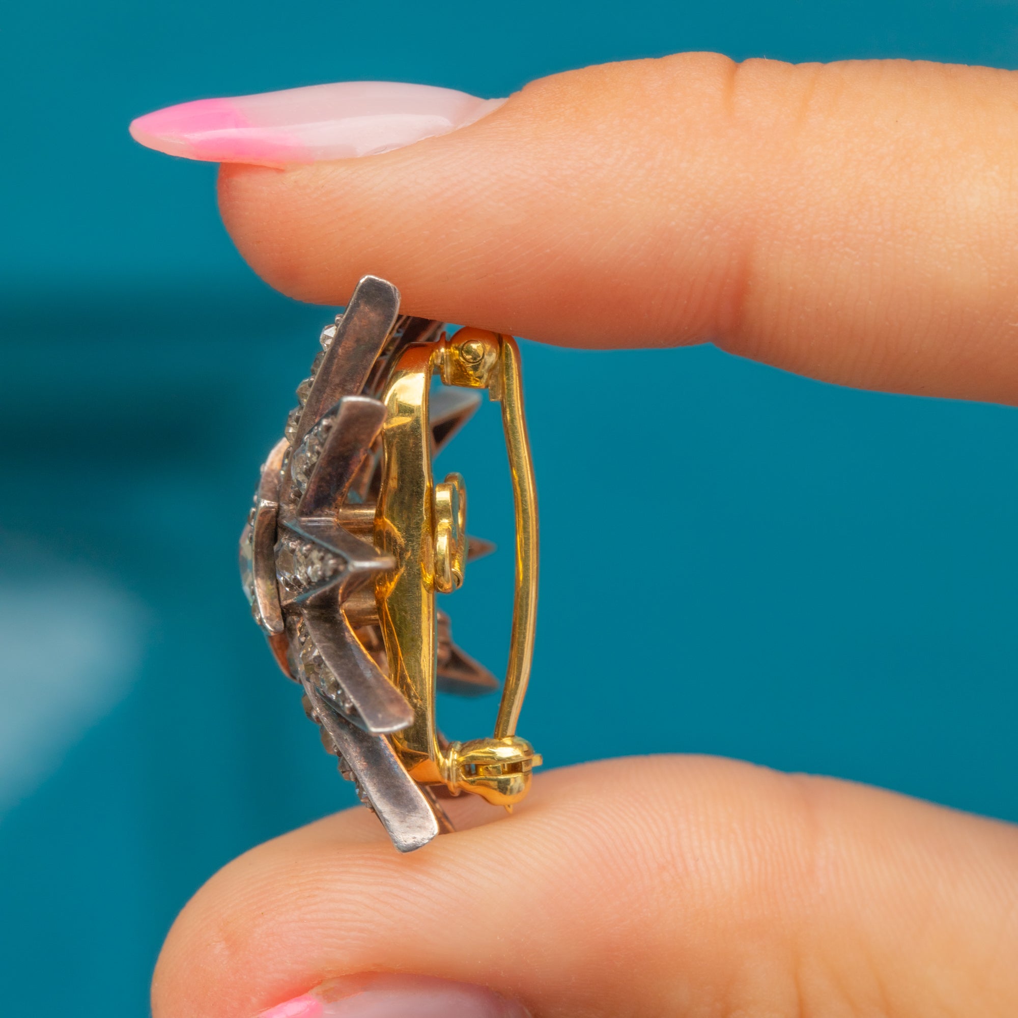 Circa 1880, this Victorian Diamond star has been made from Sterling Silver, and is complete with detachable 18ct Gold brooch fittings. You will be left star-struck by the sparkle from each hand-cut Diamond, the central Old-Mine cut Diamond alone is 0.70ct and perfectly poised. This eye-catching brooch is a versatile choice that can be enjoyed as a pendant, or worn on the lapel of your blazer, all depending on your wearing desires!