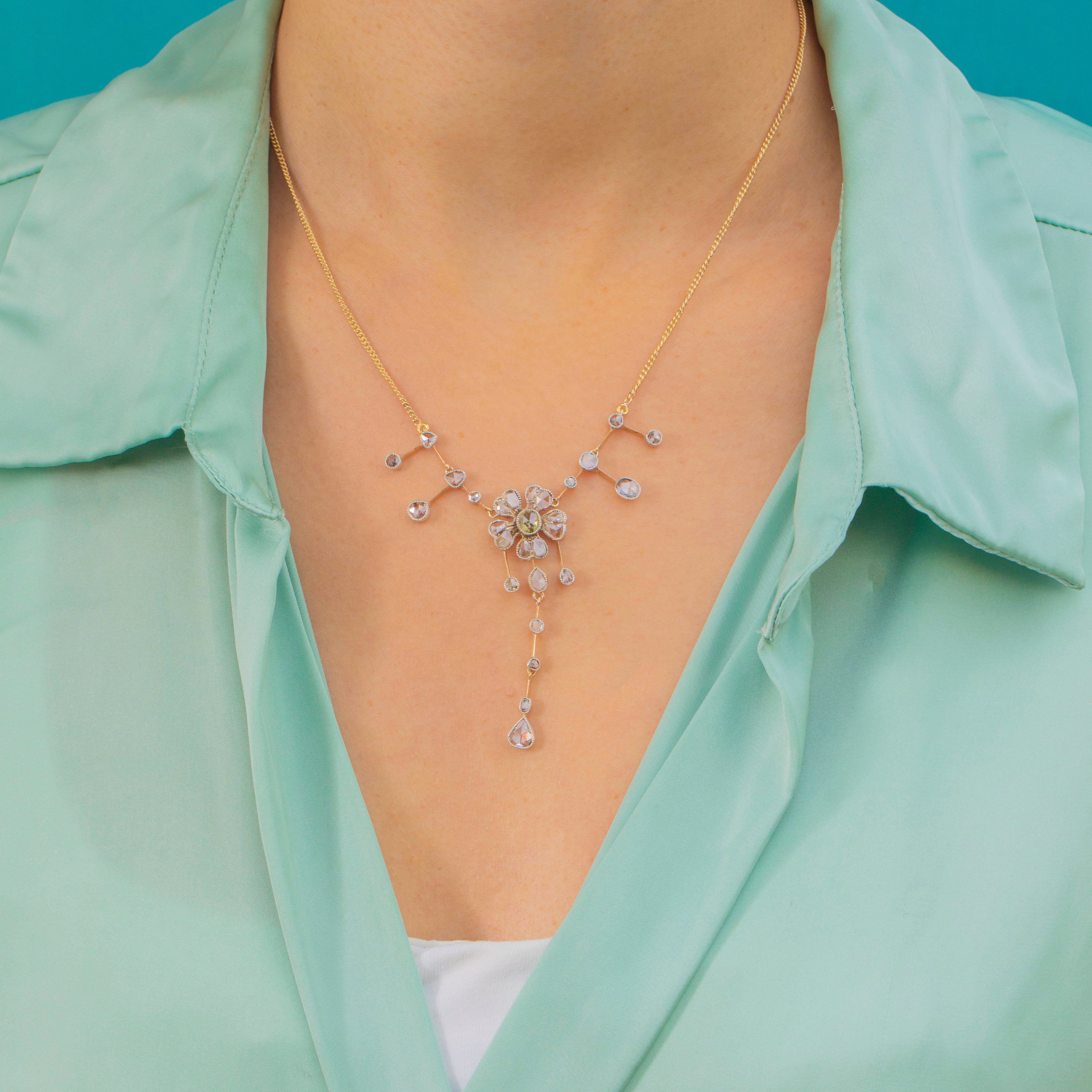 Victorian Rose-Cut Diamond Flower Drop Necklace 2.50ct
