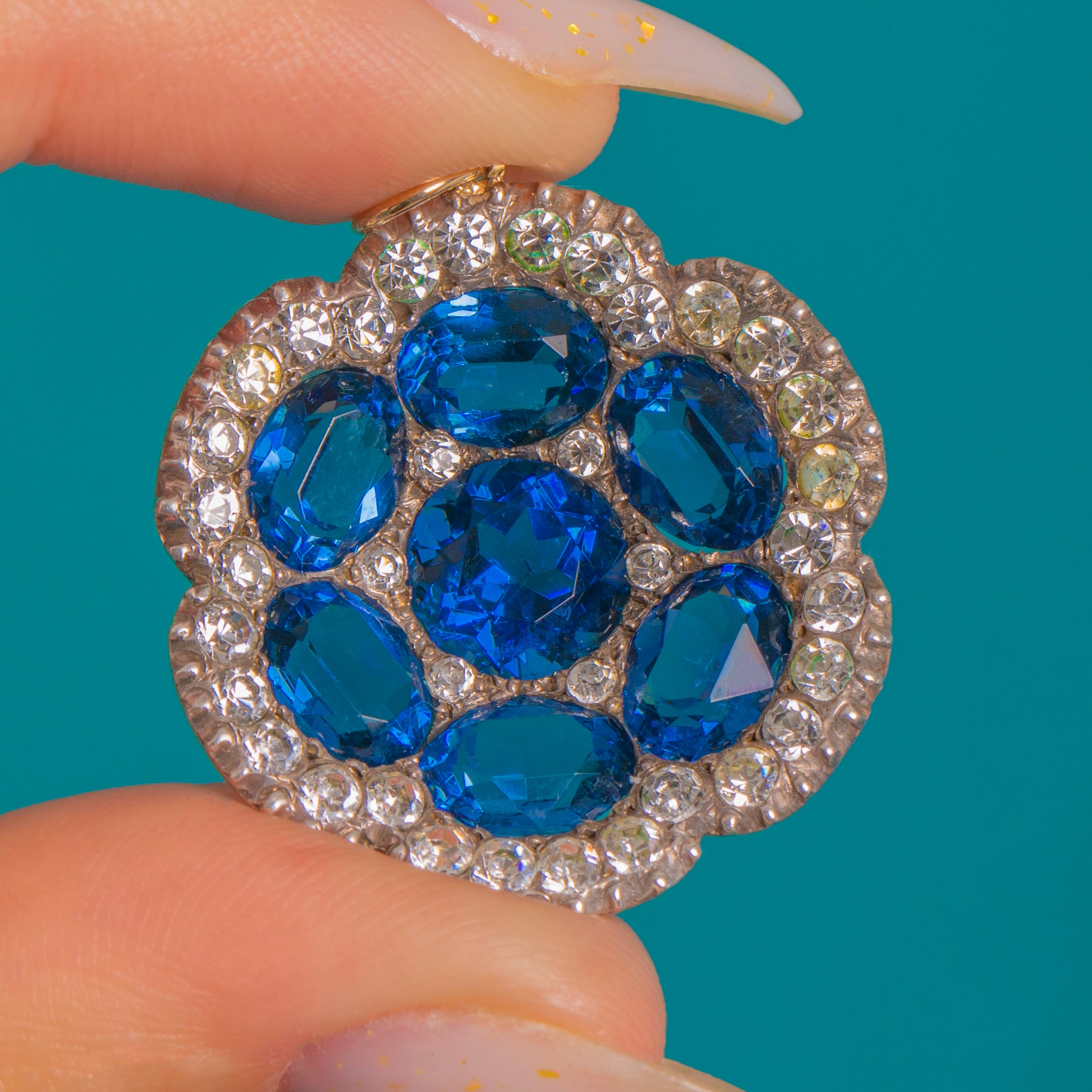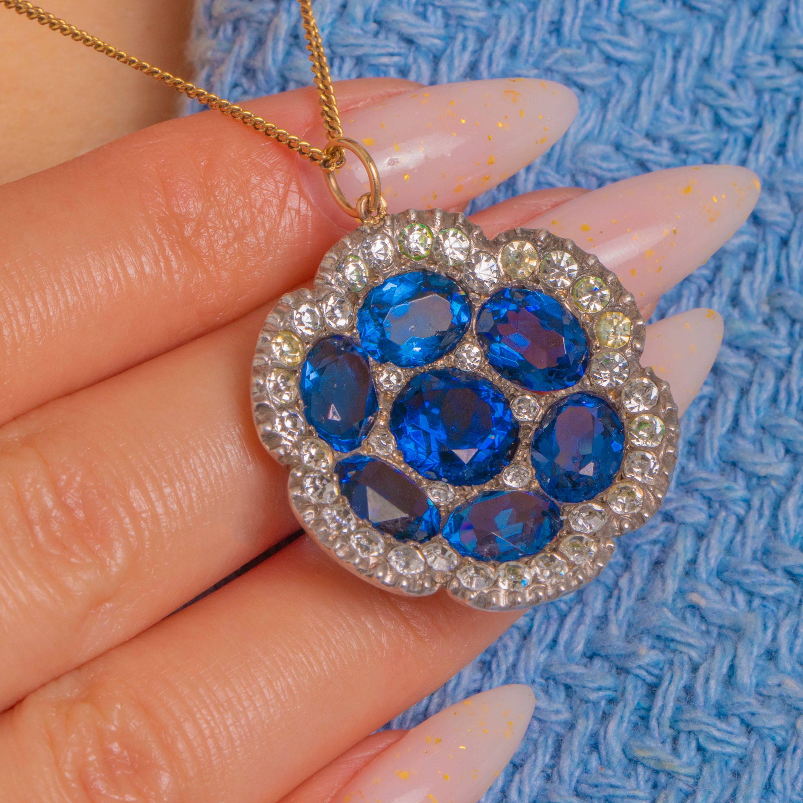 Victorian Silver & 9ct Gold Blue and White Paste Flower Pendant Item added