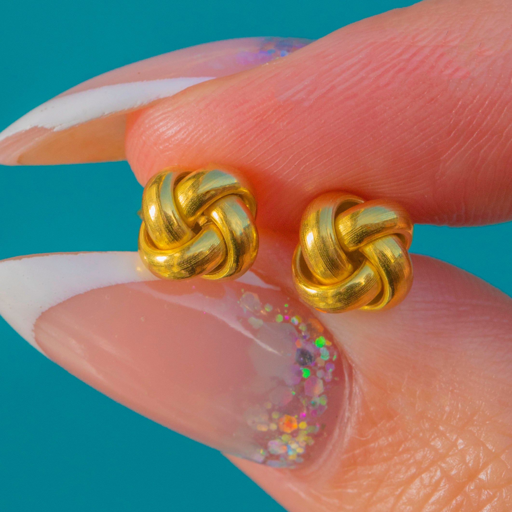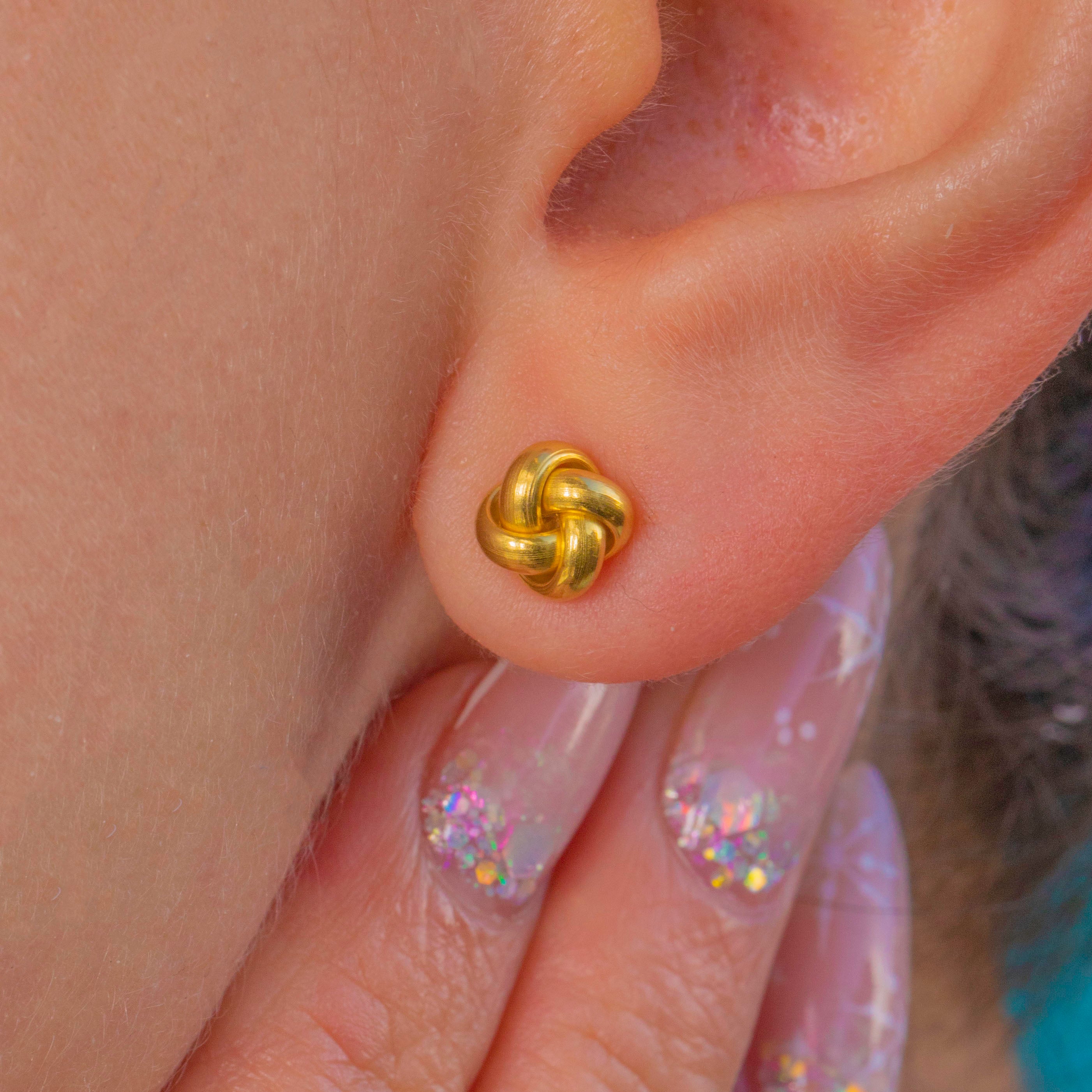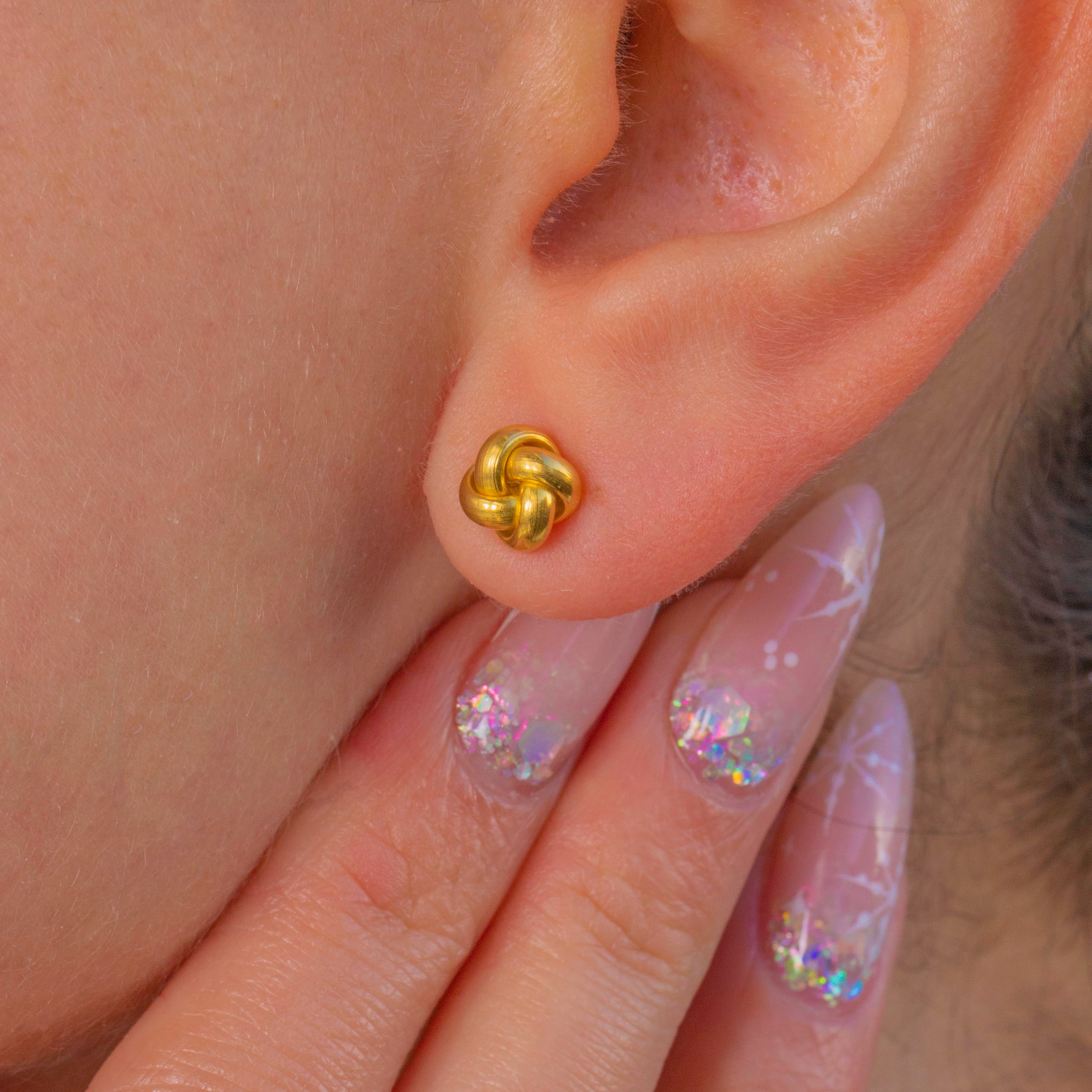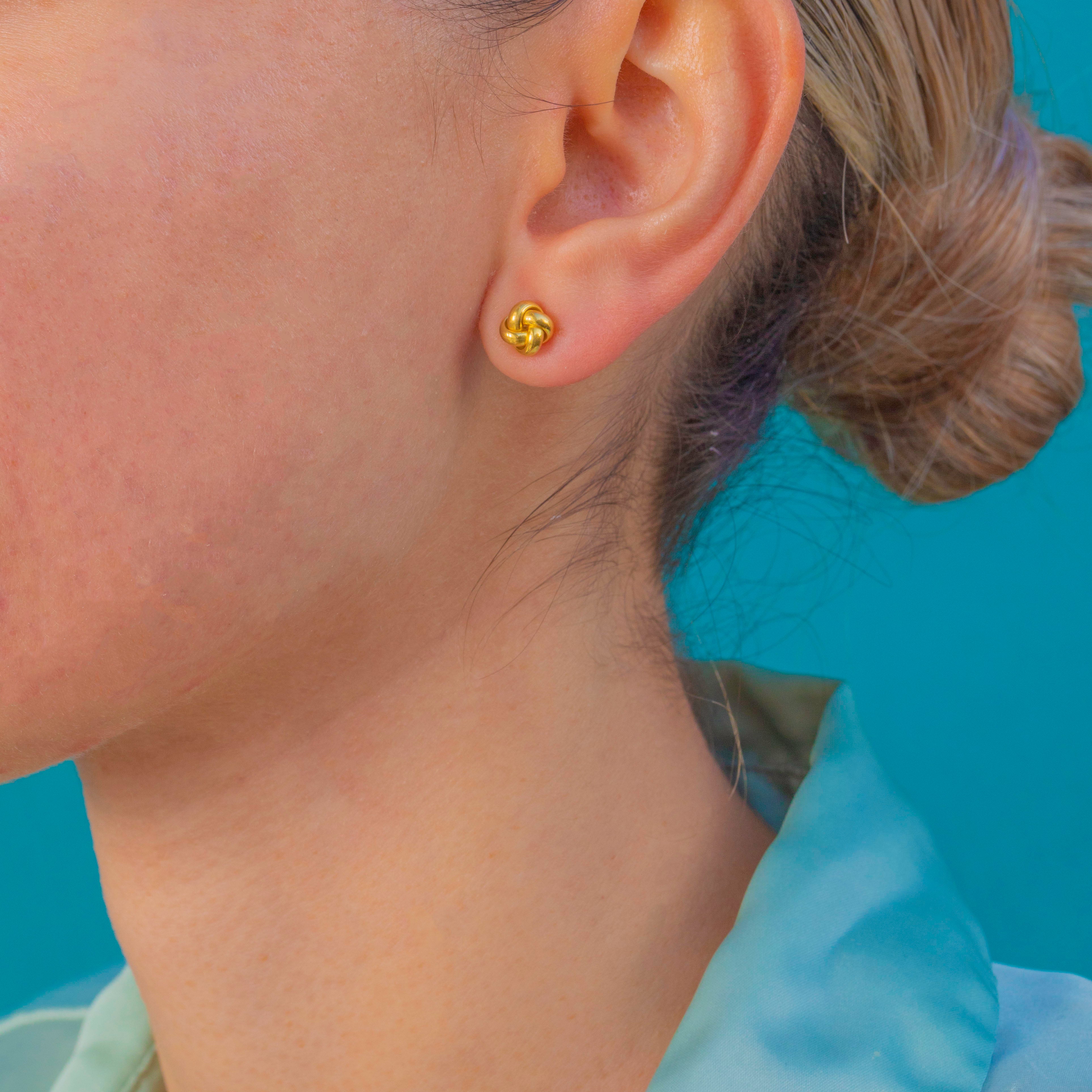 Timeless and effortlessly chic, these dainty 18ct Gold knot stud earrings are a refined staple for every jewellery box. The softly domed love‑knot motif is beautifully sculpted with smooth, interlaced “ribbons” of Gold that catch the light with a radiant high polish.
