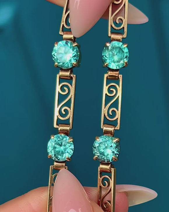 EXCELLENT: The Zircons are bright and free from chips or imperfections. All stones secure and original. The clasp is strong and features both a safety clasp and safety chain for added security. Gold links remain smooth and well-preserved. The box is a later addition, but fits well.