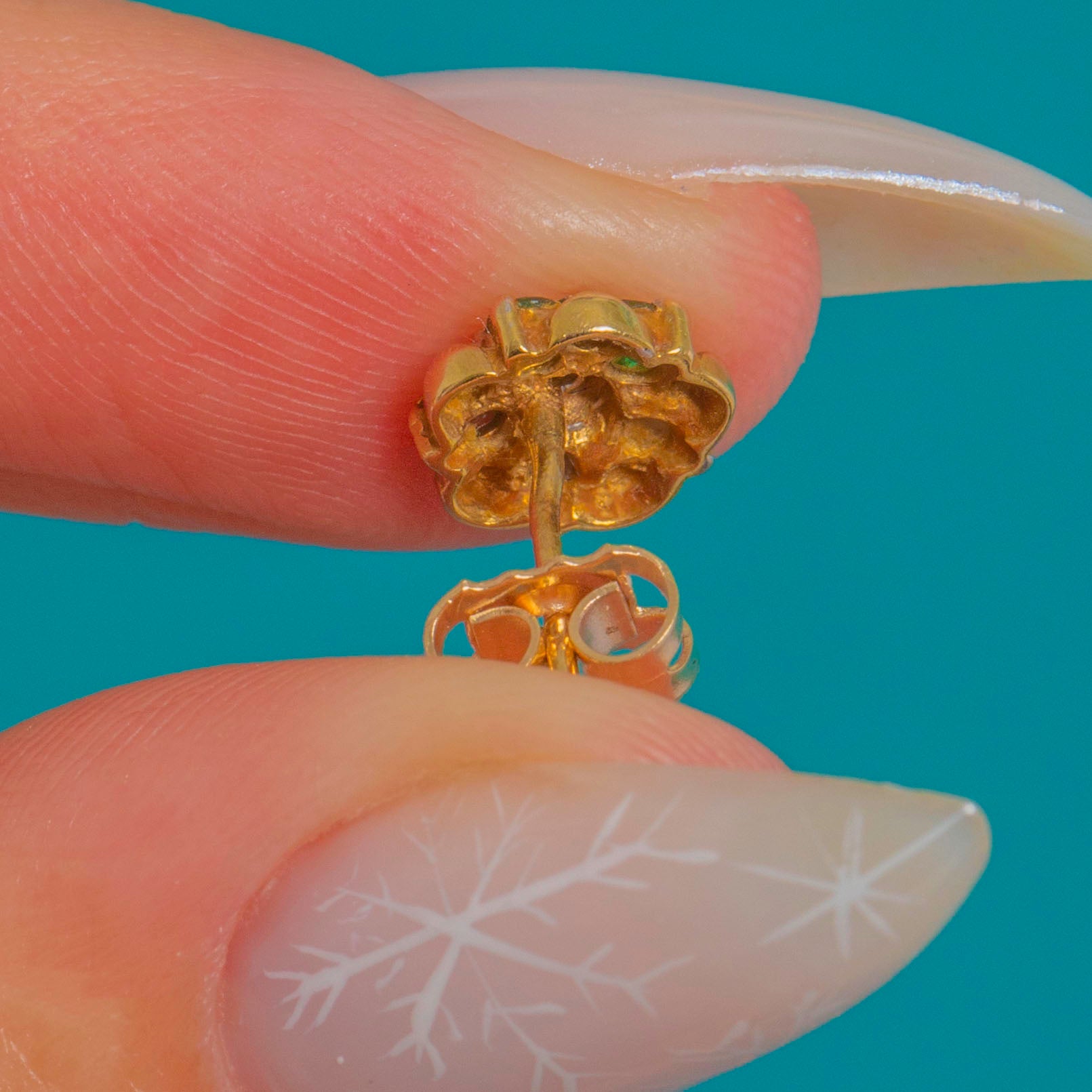 Beautifully made with an open underside and neat claws, they offer dainty proportions with joyful colour. Finished with straight posts and classic butterfly backs for effortless, everyday elegance.