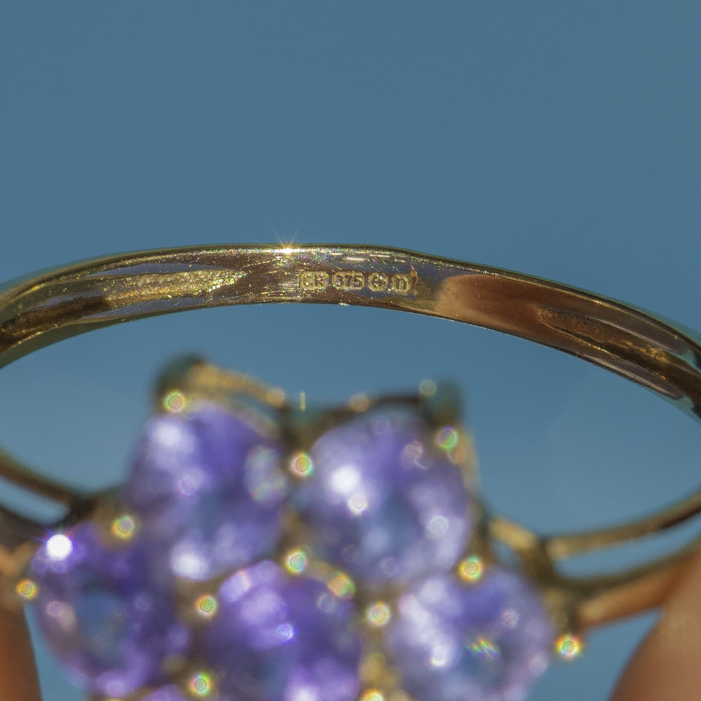 Vintage 9ct Gold Tanzanite Flower Cluster Ring