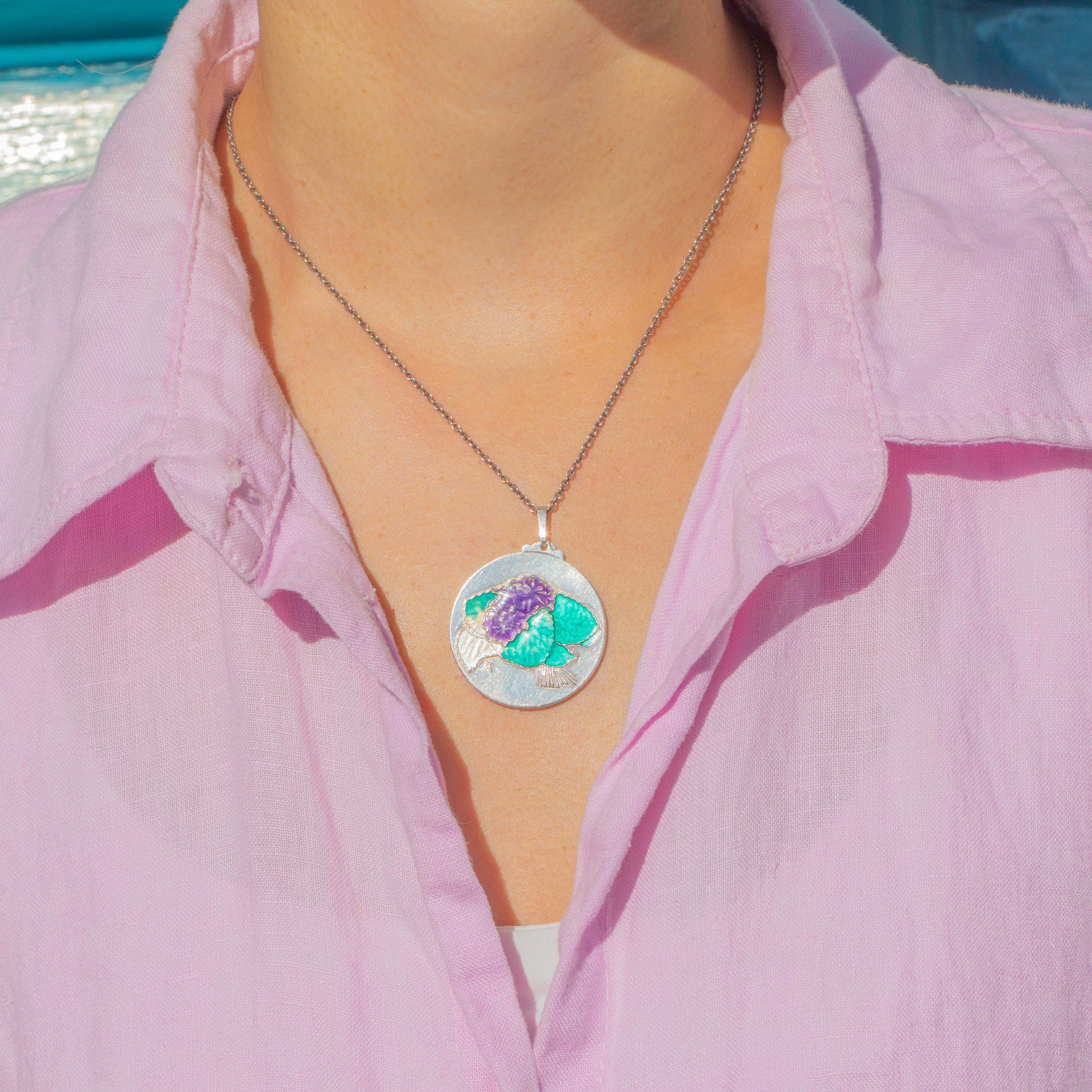 Stamped with a Japanese maker’s mark, the pendant is crafted in solid Silver, weighing 11.3g and measuring 30mm in diameter. A thoughtful gift piece and an unusual collector’s pendant.