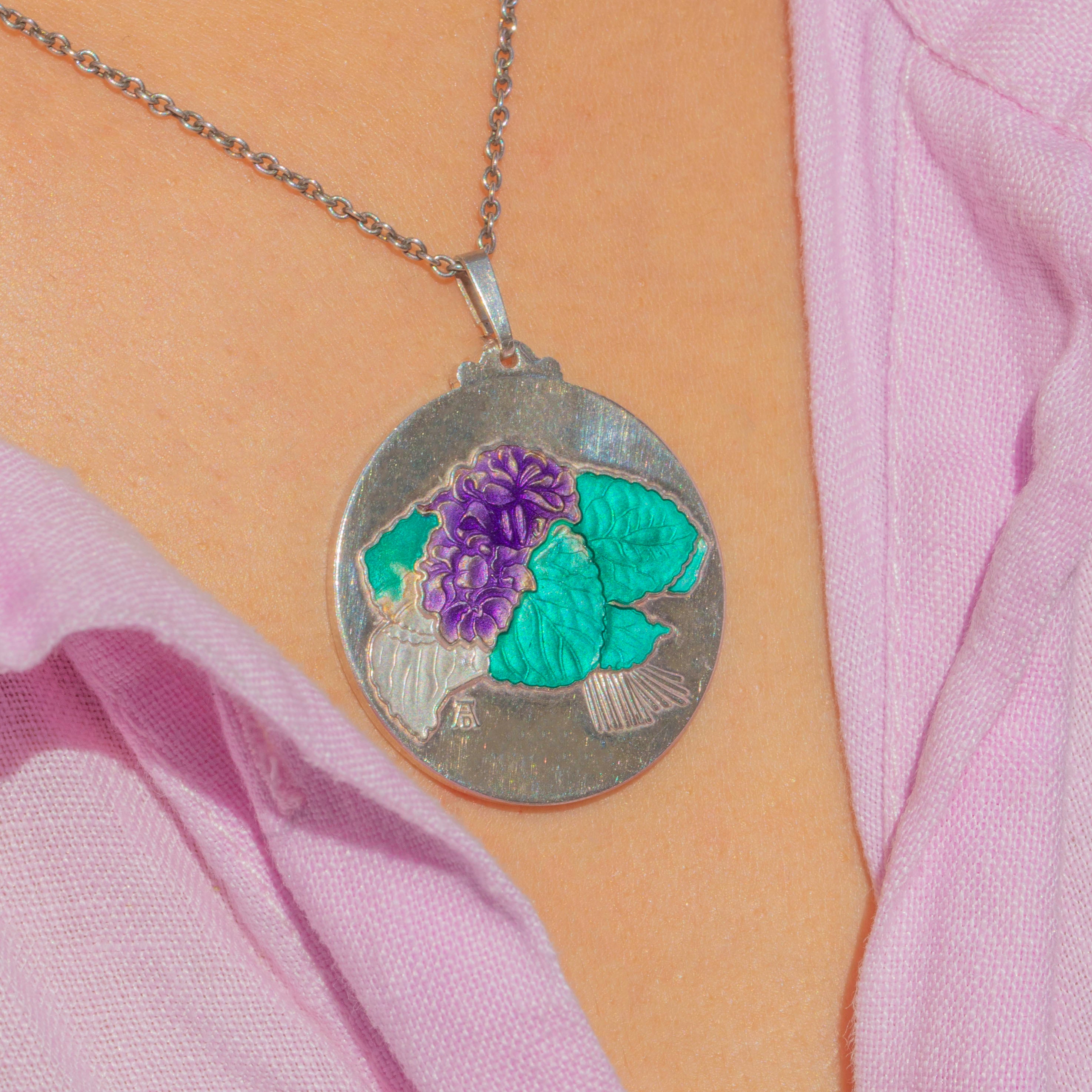 "Zum Muttertag" Albrecht Durer Silver Enamel Violet Flower Pendant
